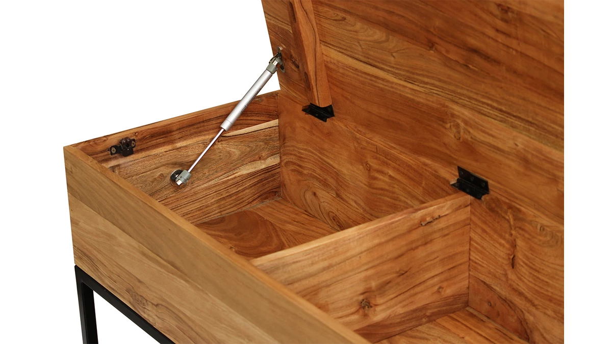 Le banc d’entrée SORG s’inscrit dans la grande tendance du style industriel. Ce meuble de caractère est composé d’un grand coffre banquette (L100 x L40 x H52 cm) en acacia massif.