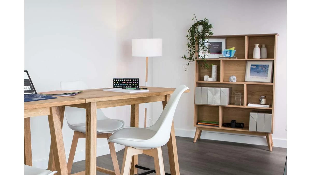 Conçue en panneaux de fibres de bois placage chêne, cette petite bibliothèque aux dimensions L110 x P35 x H165 cm séduit par son look 100% nordique. Son design léger crée une ambiance cosy dans votre intérieur. Idéale pour un salon, cette bibliothèque en bois peut également être installée dans une chambre à coucher ou bien dans un bureau.