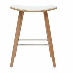 Tabourets De Bar Design Blanc Et Bois Clair H65 Cm (lot De 2) NONIE