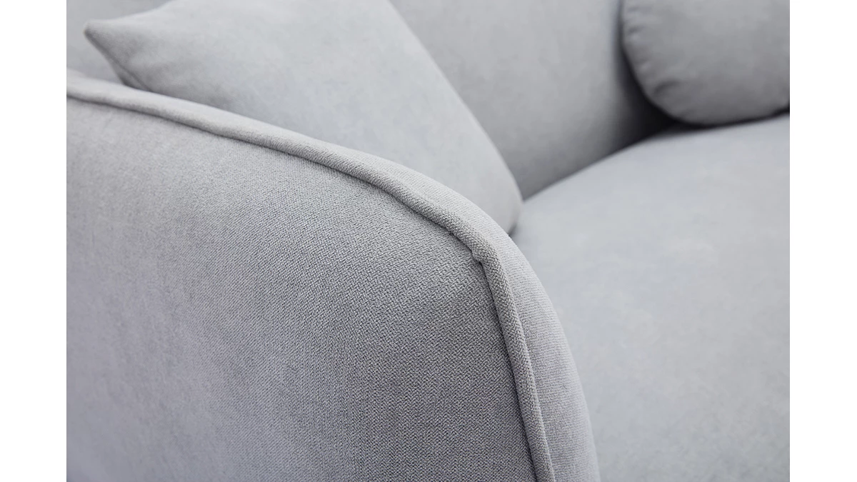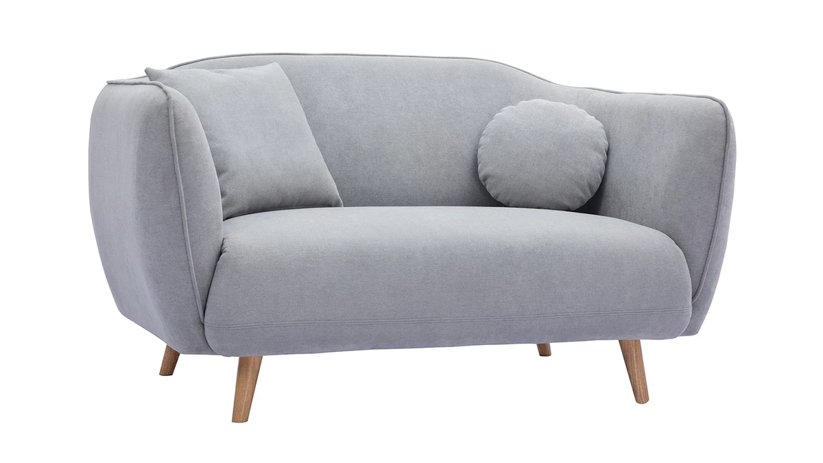 Ce canapé 2 places à l’esthétique organique transforme notre intérieur en un refuge douillet. Son assise ample (L100 x P53 cm), le moelleux de ses coussins et l’épaisseur de son rembourrage en mousse (densité 24 kg/m3) invitent à vivre une expérience de confort unique. On s’abandonne à la douceur de son revêtement, un tissu gris clair effet velours très doux au toucher (90% polyester et 10% acrylique).