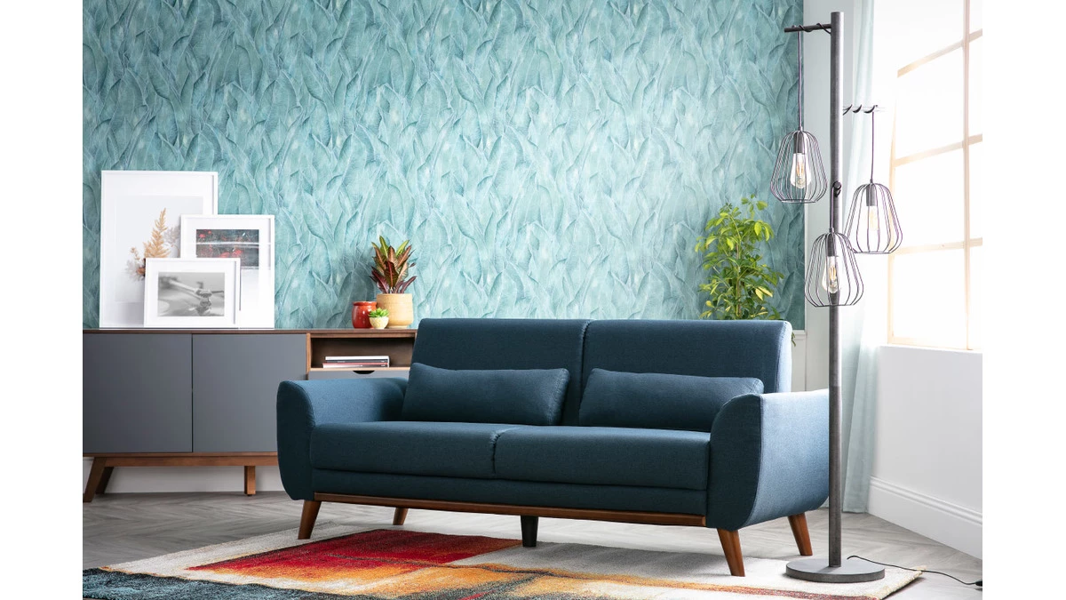 Composé d’une assise en tissu bleu et d’un piètement hévéa massif teinté noyer, ce canapé est un concentré de style et de douceur. Le mélange réussi entre l’aspect chaleureux du bois et l’élégance d’un revêtement en tissu fait de ce canapé 3 places un bel objet déco qui trouvera facilement sa place dans un salon vintage ou un séjour d’inspiration nordique.