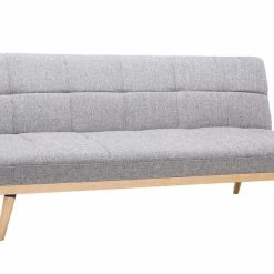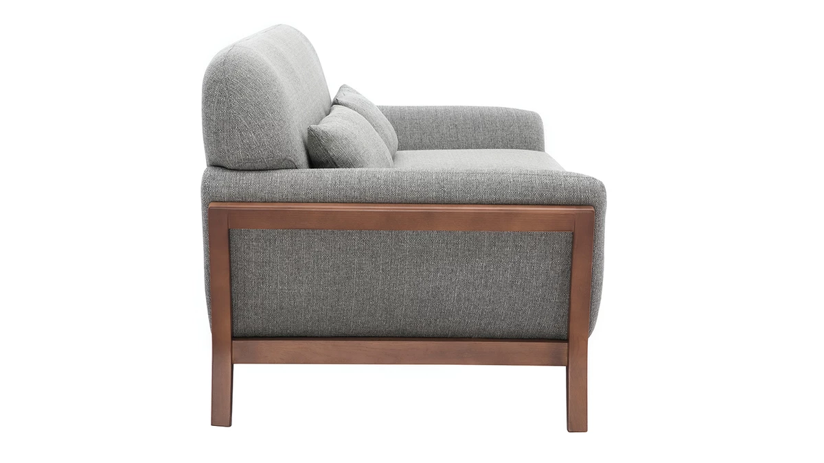Sa structure en bois foncé se prolonge au niveau du piètement pour un rendu design et original. Avec son revêtement en polyester, ce canapé 3 places charme aussi bien au niveau des yeux qu’au toucher.
