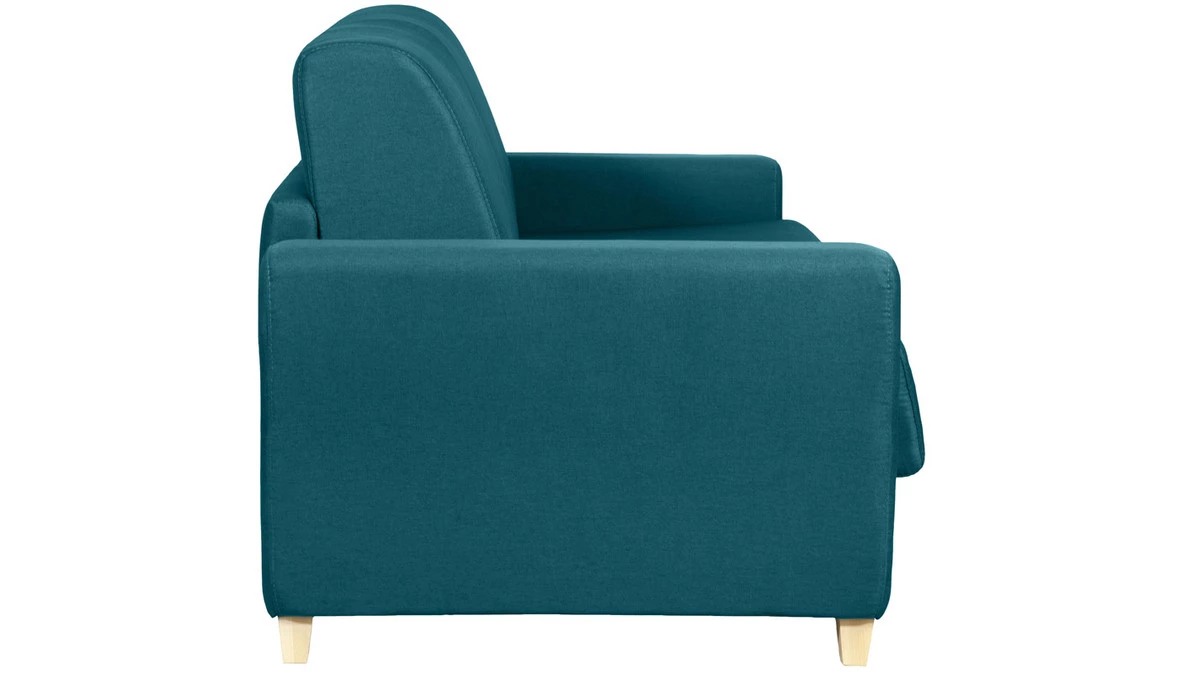 Un revêtement en tissu bleu canard, des pieds en hêtre massif , des lignes arrondies : GRAHAM affiche un sublime look cosy qui a tout pour plaire.
