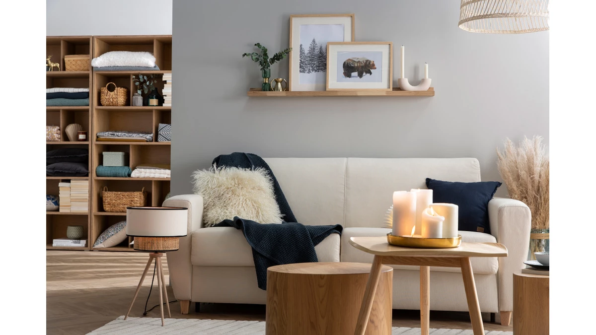 Avec son revêtement en tissu jacquard, son piètement en bois clair et sa forme tout en rondeur, le canapé GRAHAM offre un rendu chaleureux qui rappelle le mobilier nordique. Sa teinte indémodable permet d’intégrer cette assise dans différents styles déco : pour un salon 100 % scandinave, accompagnez-la d’une jolie table basse en bois. Pour un séjour contemporain, complétez-la avec une table d’appoint aux matériaux modernes.