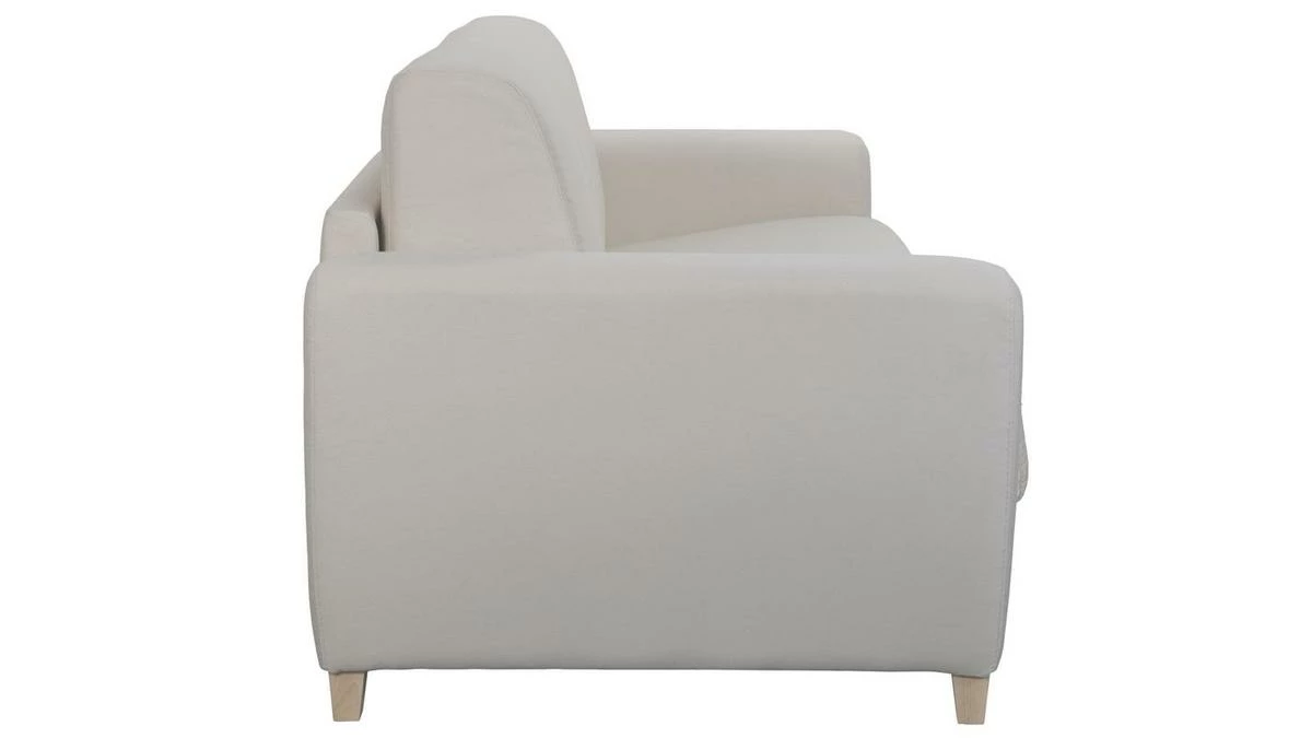 Avec son revêtement en tissu ivoire, son piètement en bois clair et sa forme tout en rondeur, le canapé GRAHAM offre un rendu chaleureux qui rappelle le mobilier nordique. Sa teinte indémodable permet d’intégrer cette assise dans différents styles déco : pour un salon 100 % scandinave, accompagnez-la d’une jolie table basse en bois. Pour un séjour contemporain, complétez-la avec une table d’appoint aux matériaux modernes.