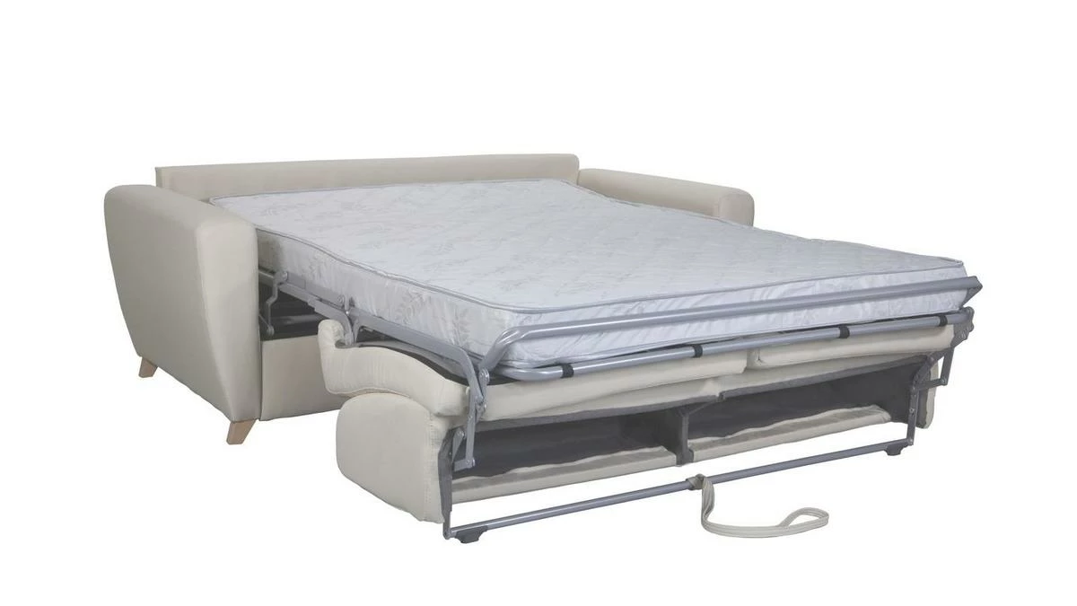 Matière : sapin massif, aggloméré de bois, mécanique électro-soudée en acier haute résistance, pieds en hêtre massif