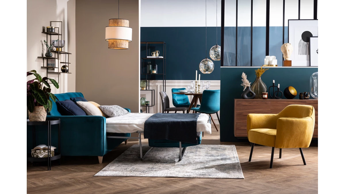 Avec le canapé-lit CIGALE, on profite enfin d’un convertible en velours chic et tendance !