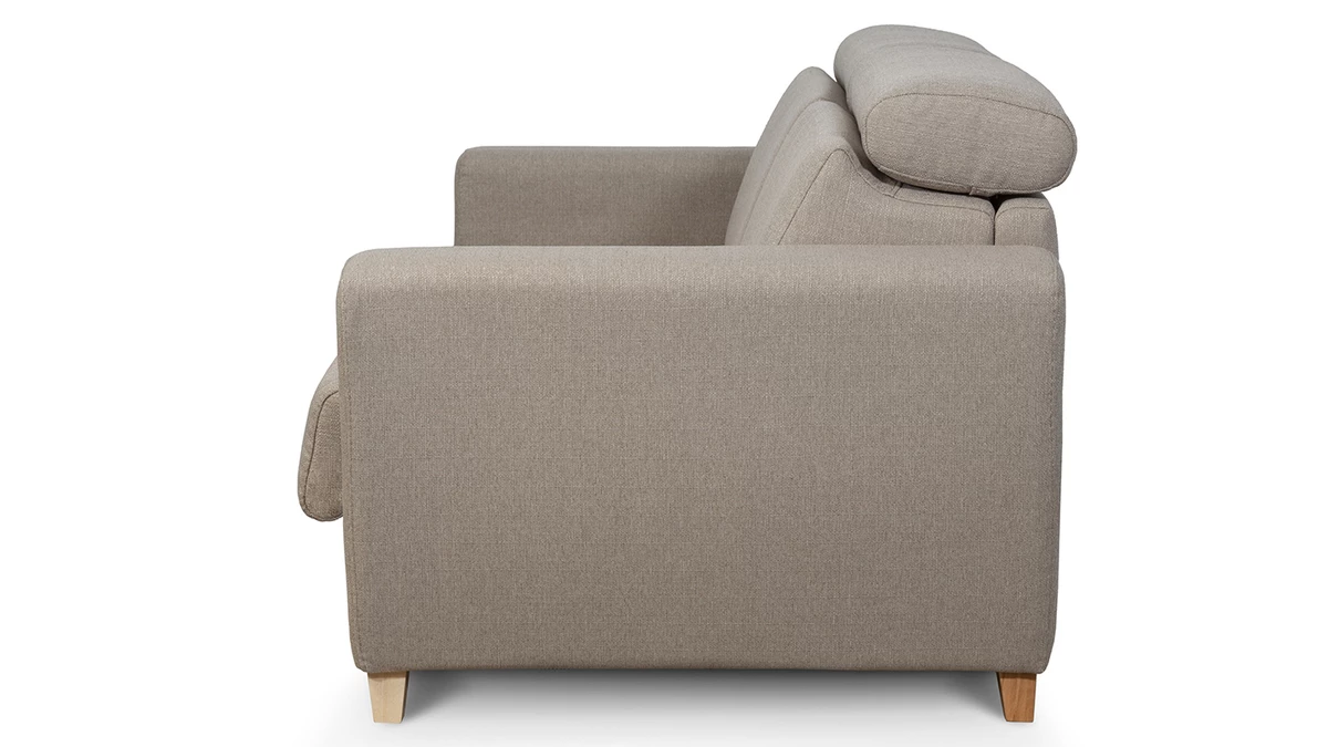 Ce canapé 3 places est revêtu d’un tissu taupe élégant et équipé d’un piètement authentique en hêtre massif. L’association de ces matériaux rappelle ce qui fait le succès des canapés scandinaves tout en apportant un charme certain à cette assise. On aime particulièrement ses têtières ajustables pour le confort et son design épuré qui lui donne ce style indémodable. Le canapé GOYA renferme tout ce qu’on attend d’un canapé confortable : une assise agréable et des têtières réglables pour ajuster le confort de chacun.