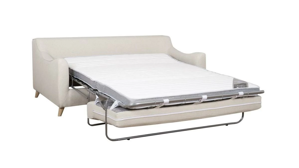 Le canapé convertible VENDOME est idéal pour créer un espace où il fait bon se détendre et recevoir. Il se déplie en un clin d’oeil pour laisser place à un coin nuit avec matelas L140x L190 cm. Ce matelas épais de 10 cm est composé de mousse polyuréthane haute résilience (densité 28 kg/m3). Le tissu stretch 100% polyester (matelassé sur fibre de polyester 400 gr/m2) qui habille la surface du matelas allie hygiène et robustesse. Vos convives se ressourceront dans le plus grand confort grâce à ce matelas réversible, anti bactériens et anti acariens.
