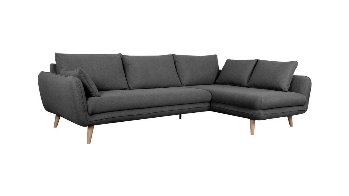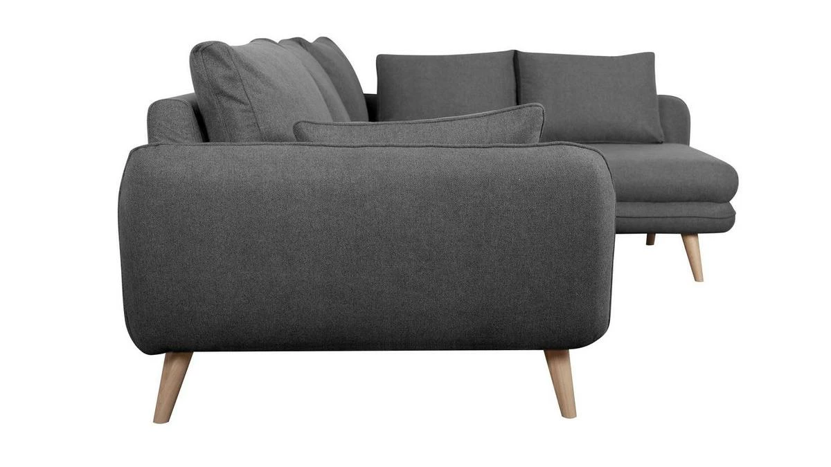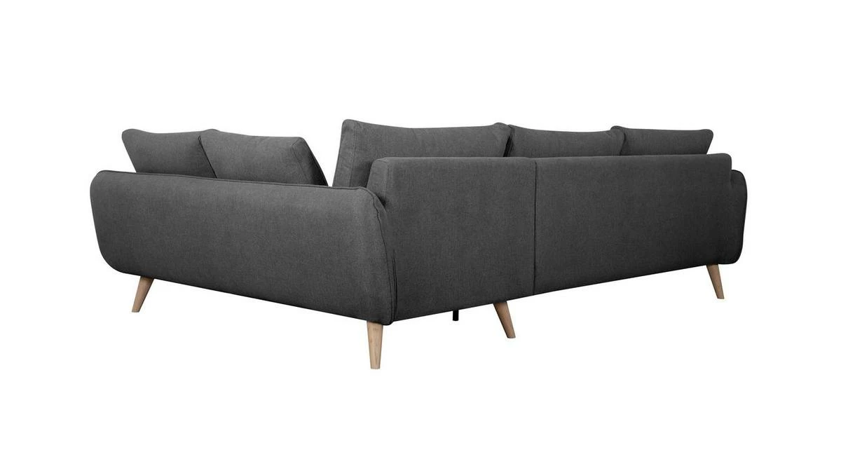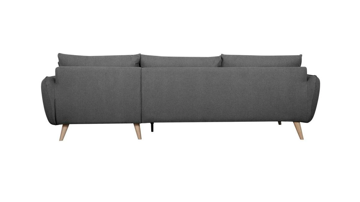 Ce canapé d’angle est une assise aussi pratique que jolie. Son revêtement en polyester gris anthracite en fait un siège intemporel et facile à intégrer dans son intérieur. Il est accompagné d’un piètement compas en hêtre massif, un bois clair et chaleureux. Sa forme épurée, ses lignes courbes et ses matériaux rappellent tout ce qui fait le charme du style nordique. Pour un salon 100 % scandinave, on complète ce canapé d’angle avec des tables gigognes en bois.