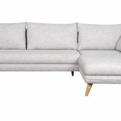 Ce canapé d’angle droit est une assise aussi pratique que jolie. Son revêtement en polyester gris chiné en fait un siège intemporel et facile à intégrer dans son intérieur. Il est accompagné d’un piètement compas en hêtre massif, un bois clair et chaleureux. Sa forme épurée, ses lignes courbes et ses matériaux rappellent tout ce qui fait le charme du style nordique. Pour un salon 100 % scandinave, on complète ce canapé d’angle avec des tables gigognes en bois.