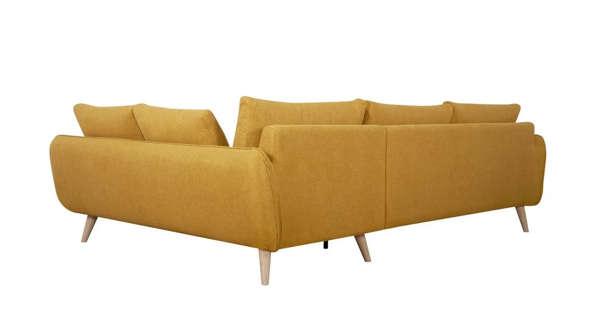 Ce canapé d’angle est une assise aussi pratique que jolie. Son revêtement en polyester jaune cumin en fait un siège dans l’air du temps. Il est accompagné d’un piètement compas en hêtre massif, un bois clair et chaleureux. Sa forme épurée, ses lignes courbes et ses matériaux rappellent tout ce qui fait le charme du style nordique. Pour un salon 100 % scandinave, on complète ce canapé d’angle avec des tables gigognes en bois.
