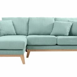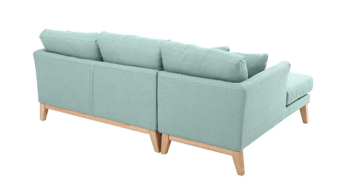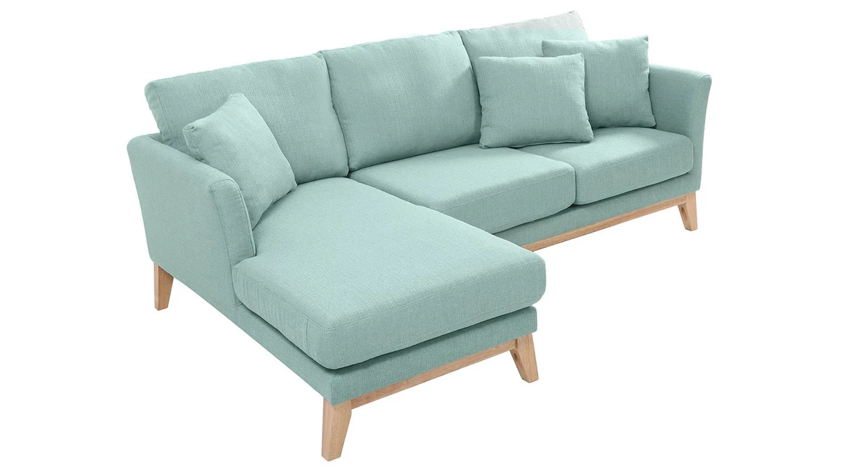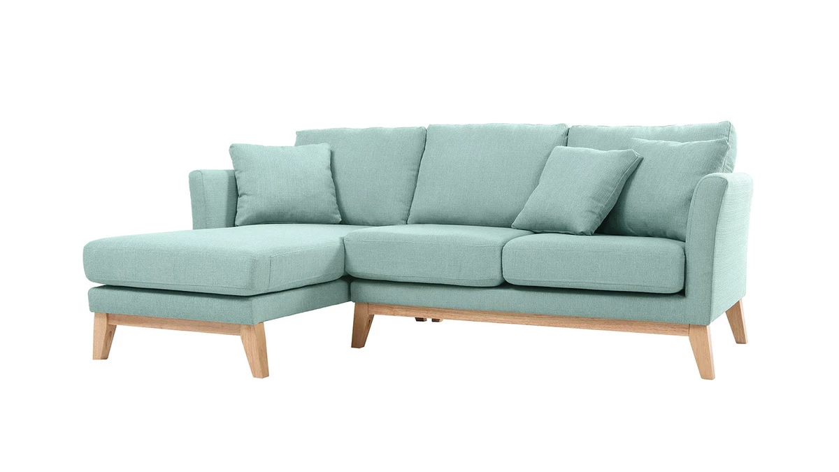 Mettez de la fraîcheur dans votre intérieur avec la jolie couleur vert lagon du canapé d’angle scandinave OSLO. Sa teinte pastel apportera douceur et élégance à votre salon et son design, une belle touche déco d’inspiration scandinave.
