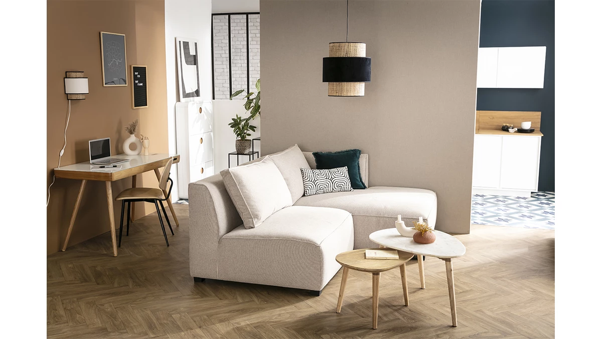 Derrière ce design moderne et ces finitions impeccables se cache une fabrication française. Le canapé d’angle PLURIEL est 100 % made in France pour un salon au chic inimitable. Il est revêtu d’un tissu 100 % polyester au toucher agréable et équipé de grands coussins de dossier pour toujours plus de confort. Ce canapé modulable est une assise conviviale qui s’adapte à tous les changements de nos vies. Ajoutez un pouf pour un salon parfaitement coordonné ou un module d’angle gauche pour profiter d’un canapé plus grand. La collection PLURIEL se compose de plusieurs éléments à assembler pour composer soi-même le canapé contemporain de ses rêves.