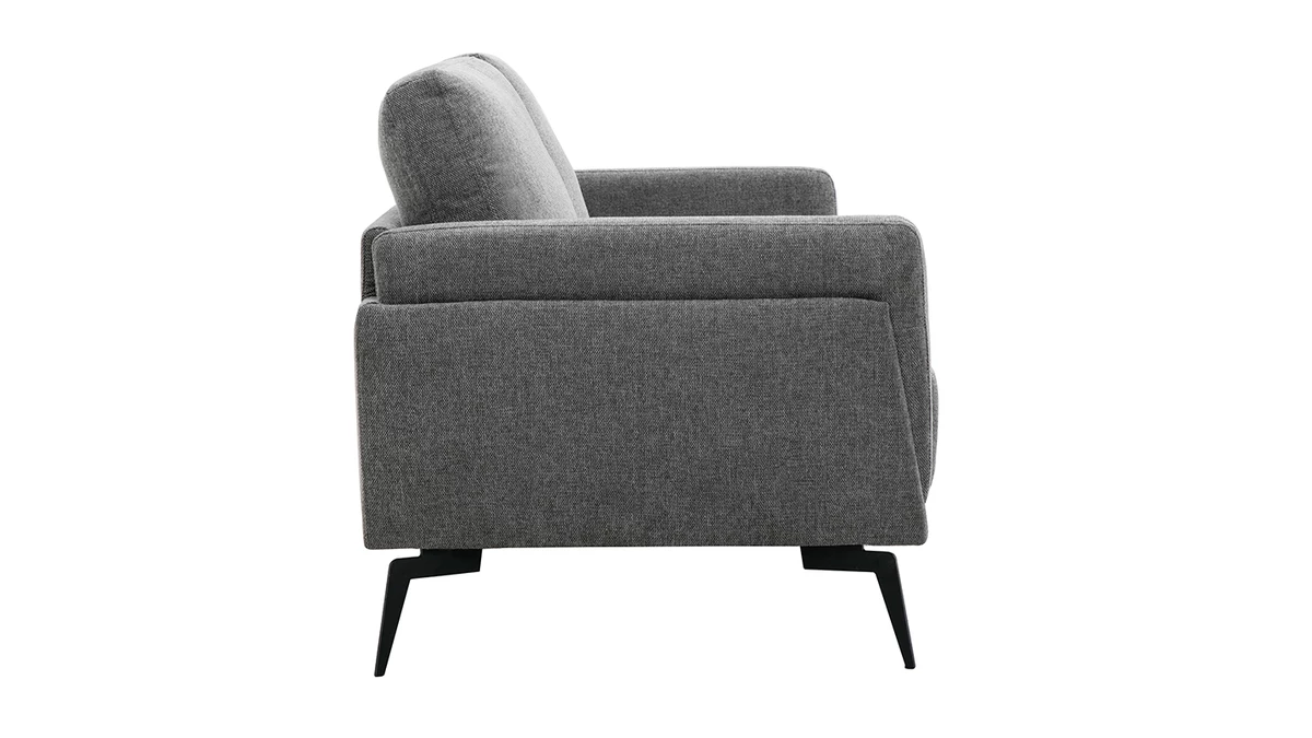 Ce canapé design aux lignes essentielles mixe des pieds fins en métal noir (H17 cm) à un élégant tissu effet velours texturé gris (100% polyester). Cette couleur sobre et intemporelle s’installe avec aisance dans tous les intérieurs.