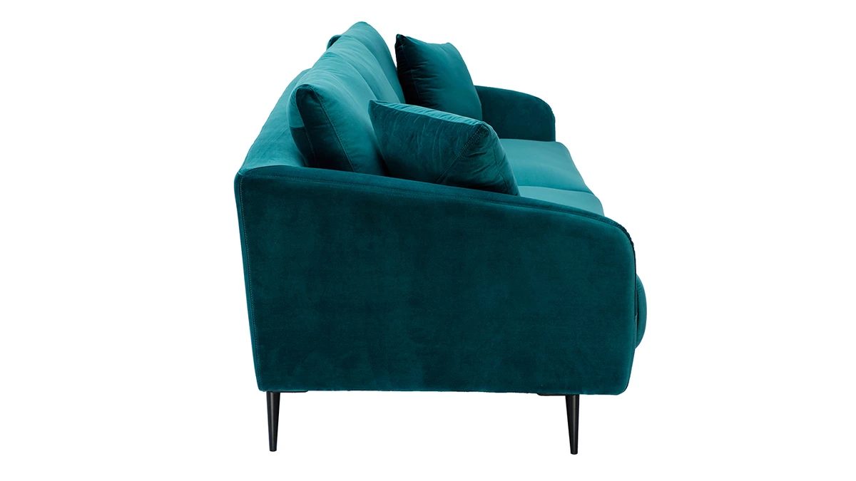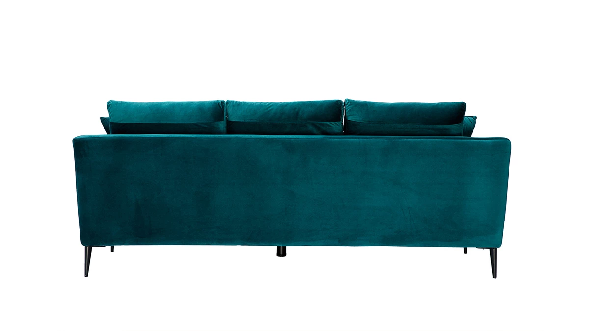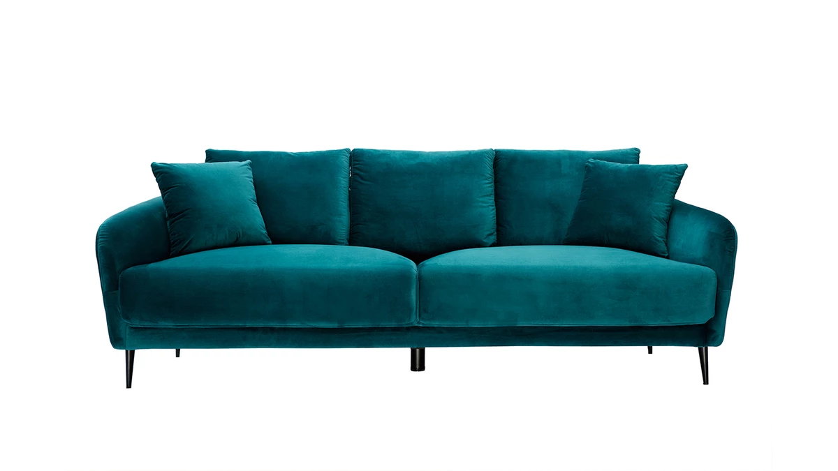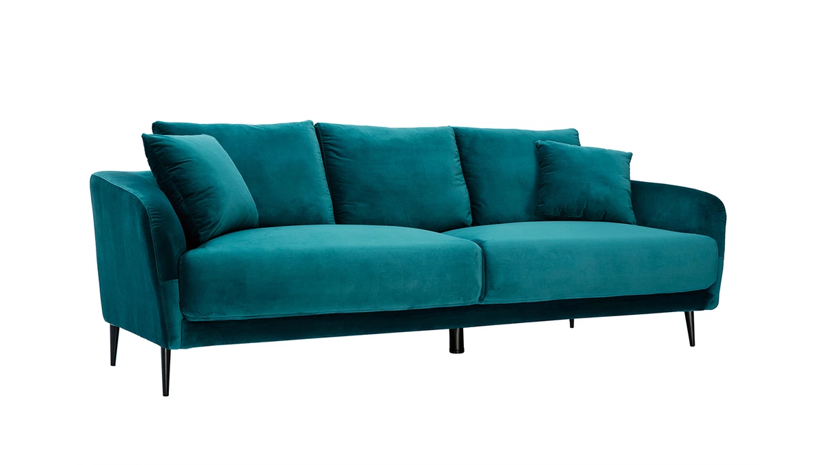 Le canapé 3 places JERRY promet de jolis moments de détente en famille. De l’assise ample généreusement garnie aux accoudoirs rebondis en passant par les coussins de dossier ultra moelleux, tout a été pensé pour vous offrir un maximum de confort. Vous apprécierez également la douceur du revêtement effet velours gris (tissu 100% polyester). Une enveloppe au toucher velouté qui habille avec élégance les épais coussins d’assise (densité 35 kg/m3). Les quatre jolis pieds fuselés en métal noir apportent beaucoup de légèreté à l’ensemble.