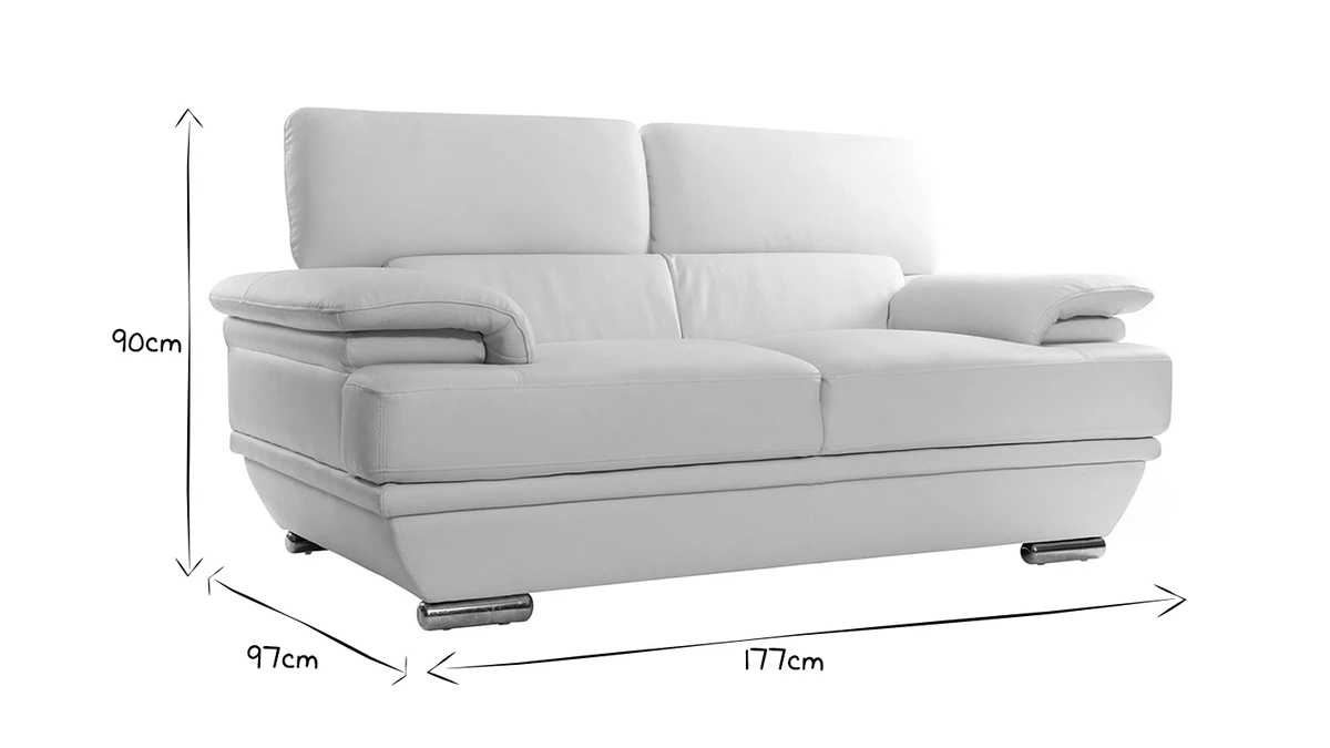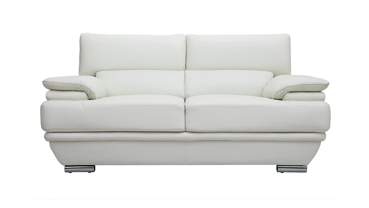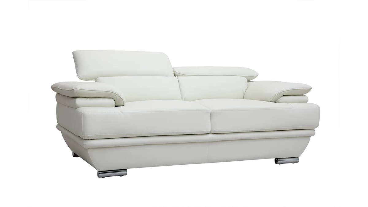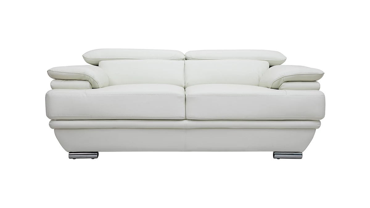 Doté de têtières ajustables, d’une assie agréable (densité assise : 26 kg/m3) et de larges accoudoirs, ce beau canapé en cuir design sera l’allié idéal de vos moments de pure détente. Il ne vous reste plus qu’a prendre place au coeur de ce canapé 2 places aussi beau que confortable.