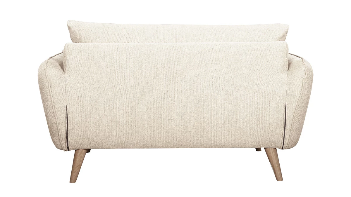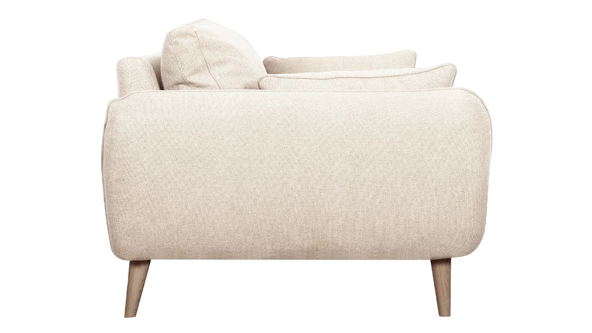 Avec son design tout en courbes et ses proportions généreuses, ce canapé scandinave nous offre un confort durable. Son assise moelleuse (L107 x P60 cm) est une invitation à la relaxation tandis que son joli beige (100% polyester) nous enveloppe de douceur. Il est complété par un piètement compas en hêtre massif à la fois naturel et un brin rétro.