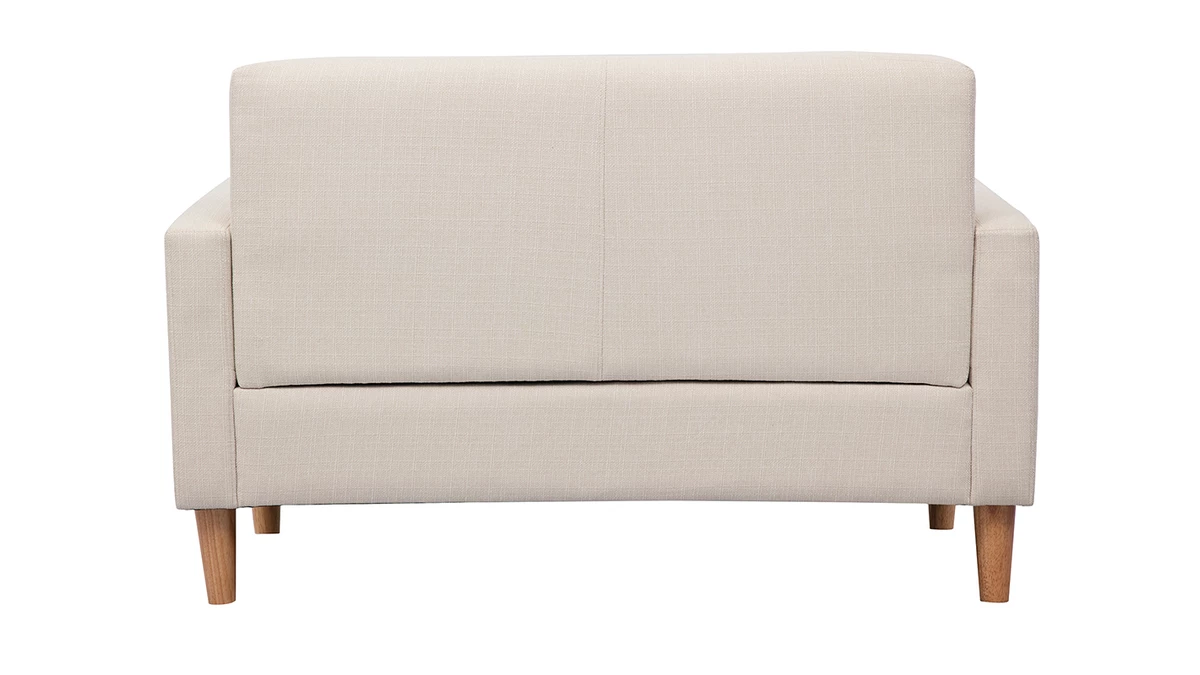 Son piètement en hévéa massif apporte un côté nature et scandinave en plus de lui conférer une stabilité et un maintien parfait. Son assise épaisse offre un bon confort et promet des soirées agréables et cocooning devant la télévision. Ses petites dimensions sont parfaites pour agrémenter un petit salon ou une chambre. Ce canapé 2 places peut être accompagné de fauteuils scandinaves assortis.