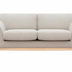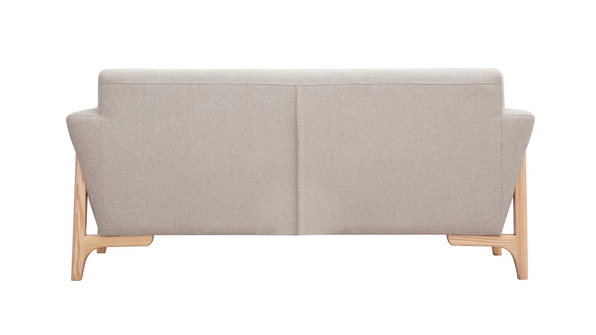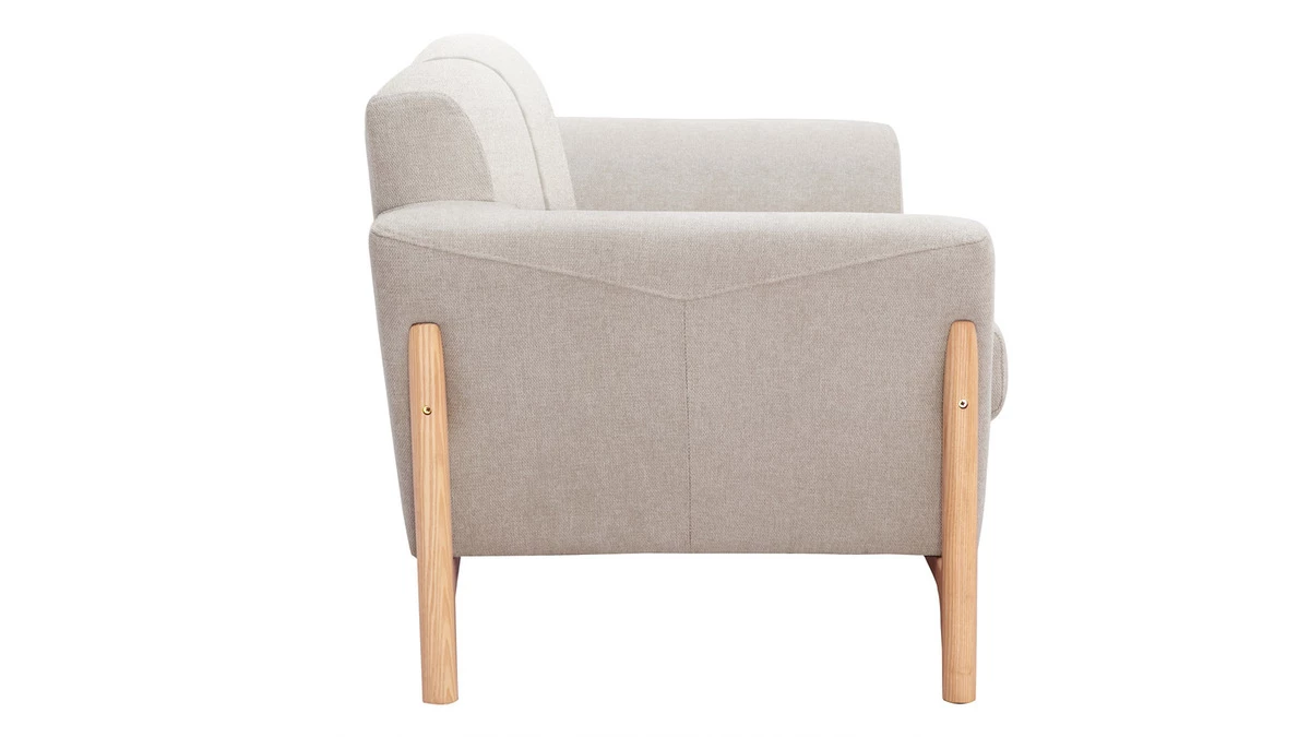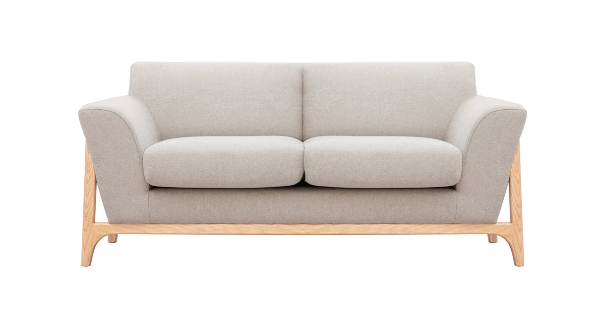 Simple et authentique, ce canapé se démarque par le design singulier de son piètement en frêne massif. Filaire et ajouré, il souligne des formes rebondies habillées d’un revêtement au toucher réconfortant. Lumineux et chaleureux le tissu effet velours texturé beige forme un duo tout en douceur avec le bois clair. Bien que la silhouette intemporelle de ce canapé 2 places s’envisage dans de nombreux univers déco, avec son style minimaliste et cocooning, on l’imagine parfaitement compléter un séjour à l’ambiance japandi ou scandinave.