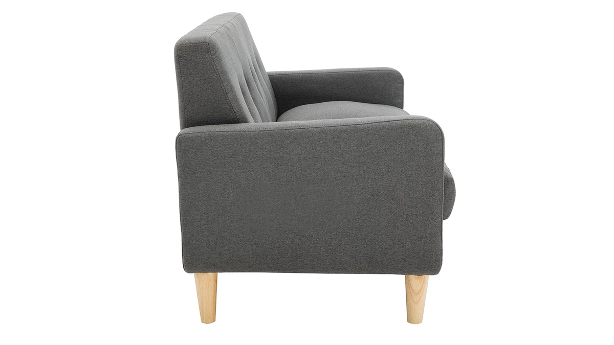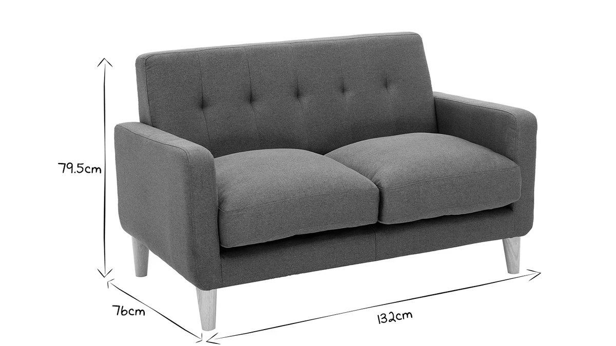 Avec le canapé LUNA, les studios et les petits séjours s’équipent d’une assise gain de place ultra déco. Ses jolies courbes et ses coussins moelleux transforment le salon en véritable petit cocon où il fait bon se détendre. Ce mini canapé associe un revêtement chaleureux en polyester gris foncé avec un piètement naturel en bois massif. Il rassemble les essentiels pour un petit salon cosy.