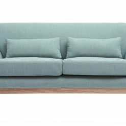 Canapé Scandinave 2 Places En Tissu Vert Lagon Et Bois Clair YOKO