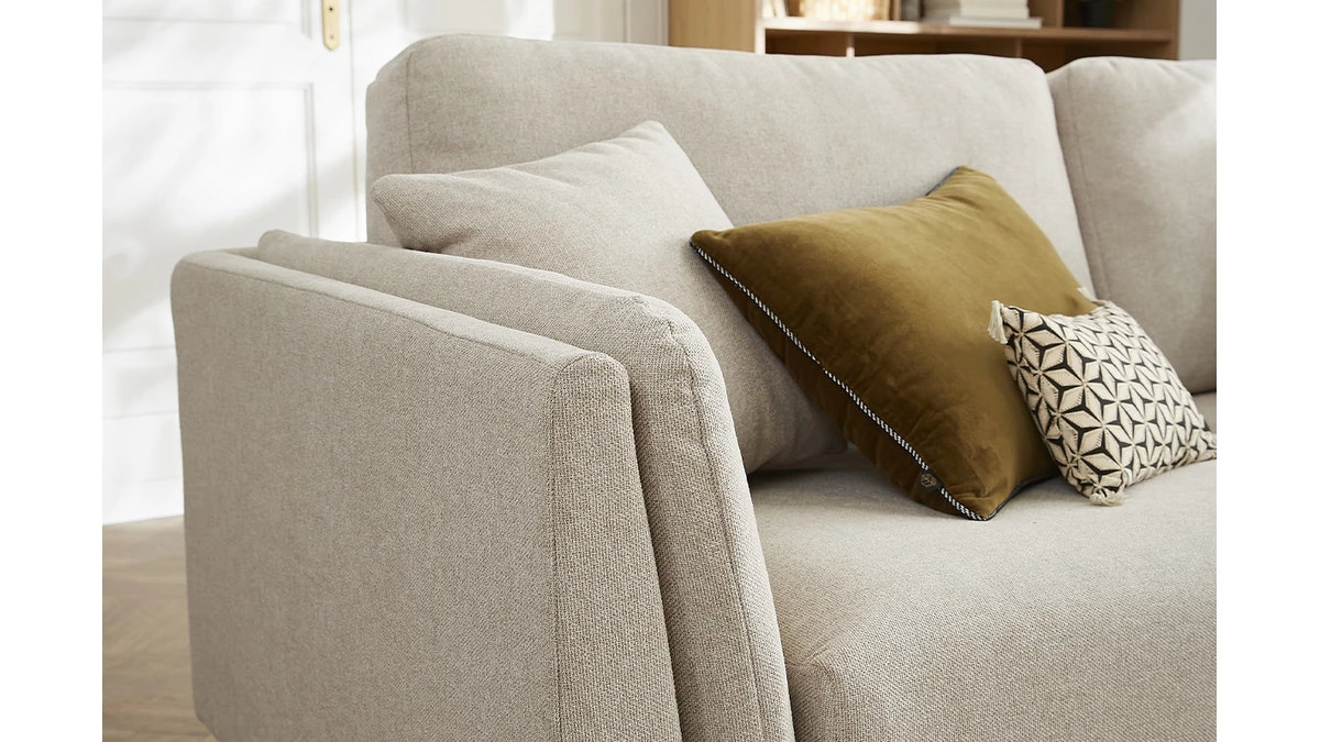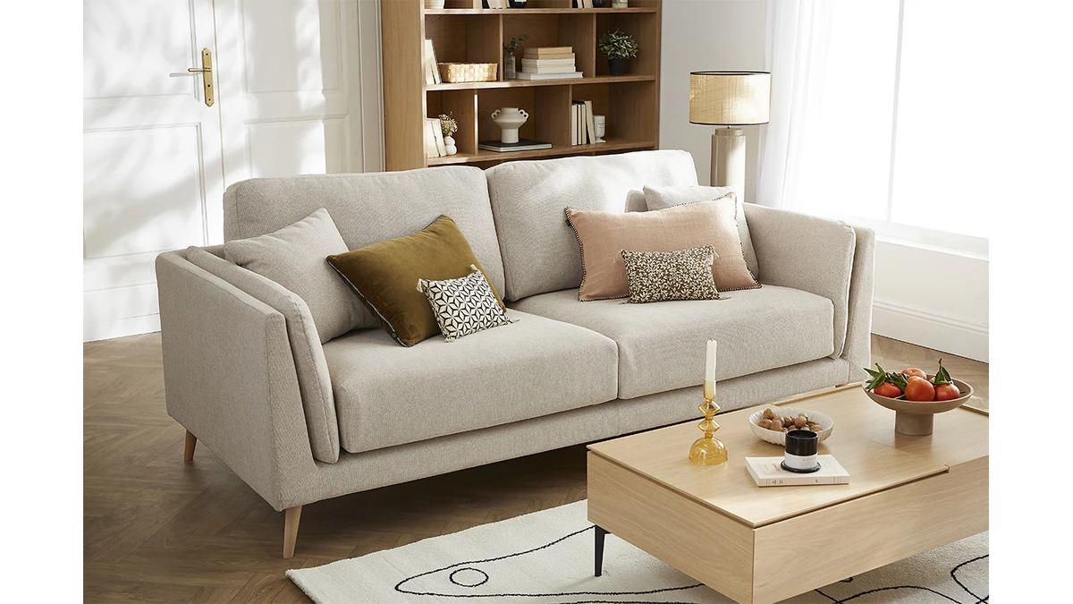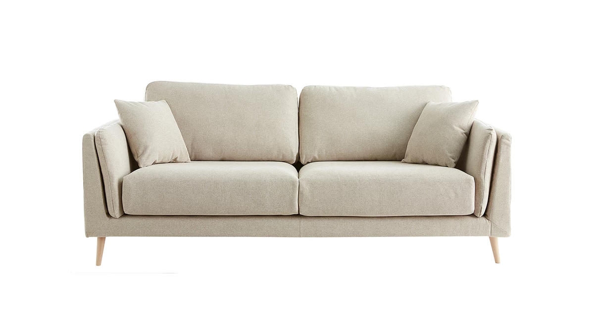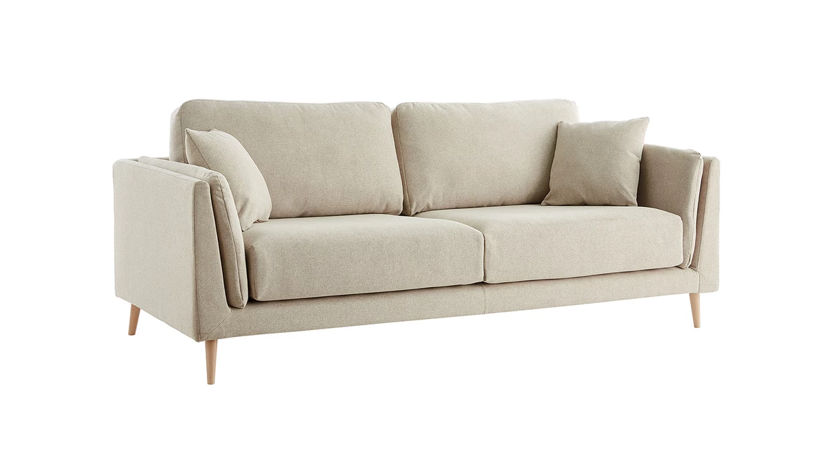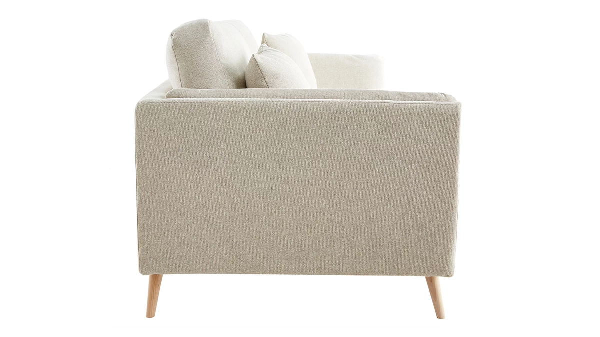 Le canapé scandinave VOGUE est une assise 3 places confortable. D’épais coussins d’assise garnis de mousse haute résilience (densité 30 kg/m3) accompagnés de petits coussins d’appoint pratiques garantissent un confort d’assise agréable. Grâce à sa structure en pin et ses pieds en hêtre massifs, le modèle VOGUE est un allié solide pour aménager un espace convivial dans le salon.