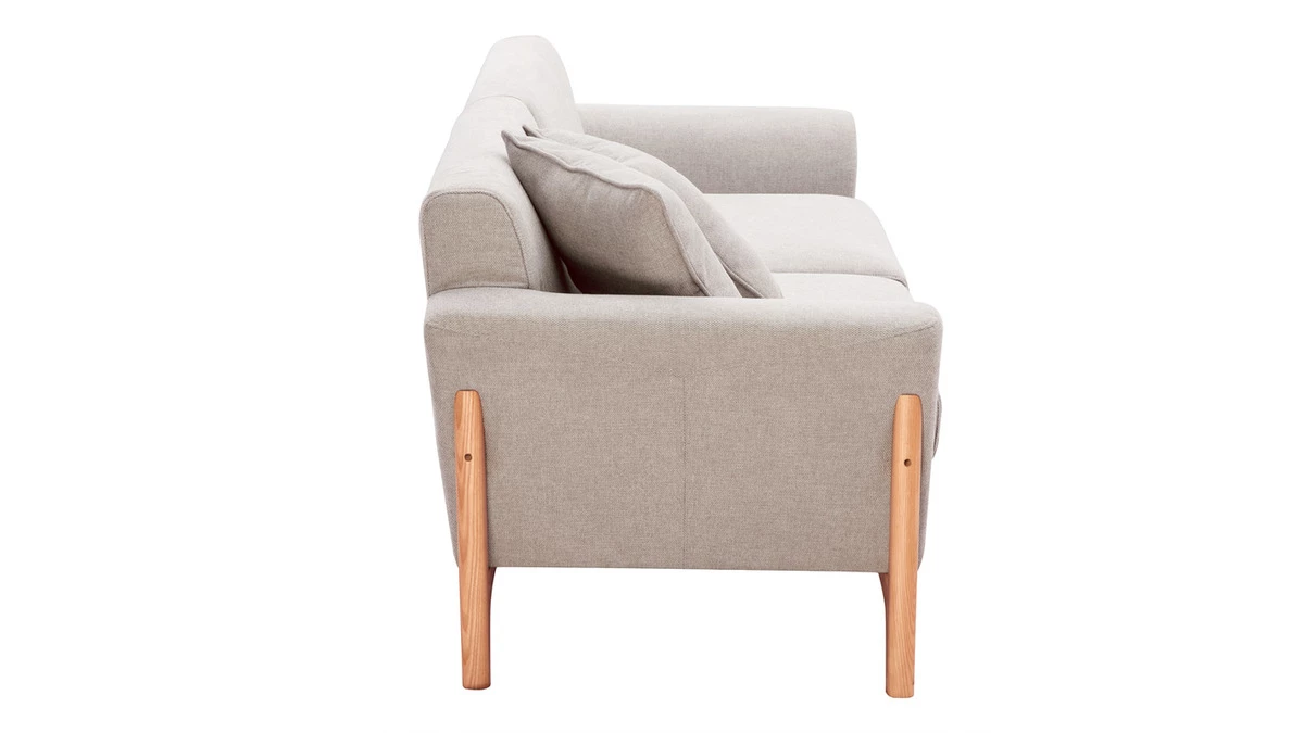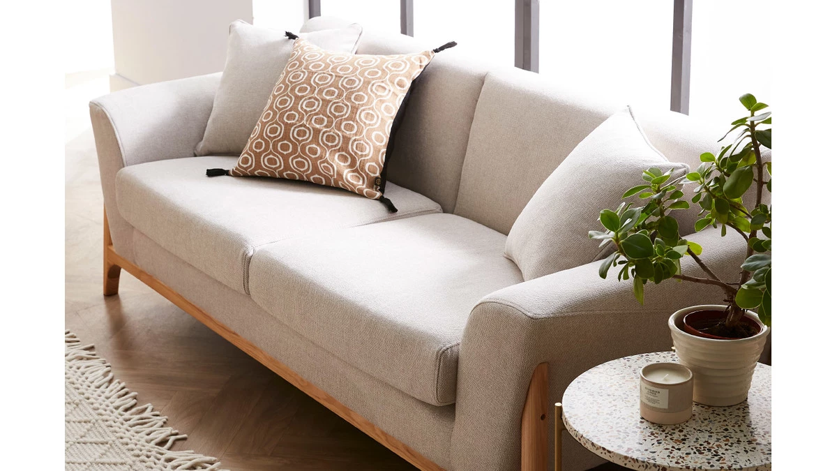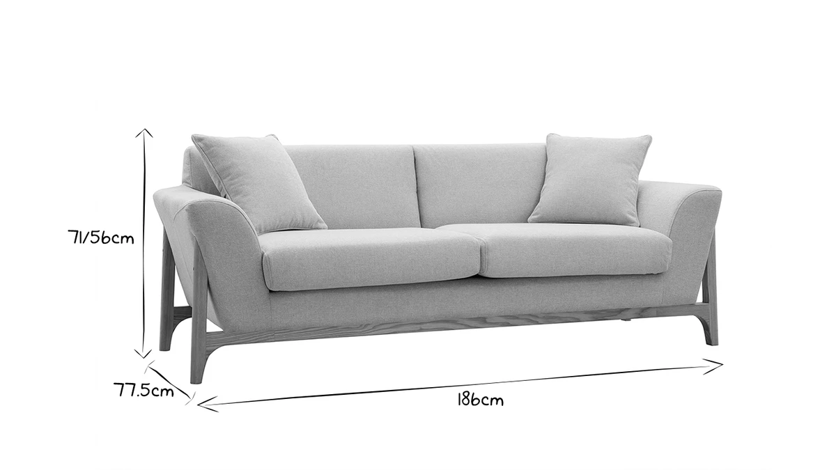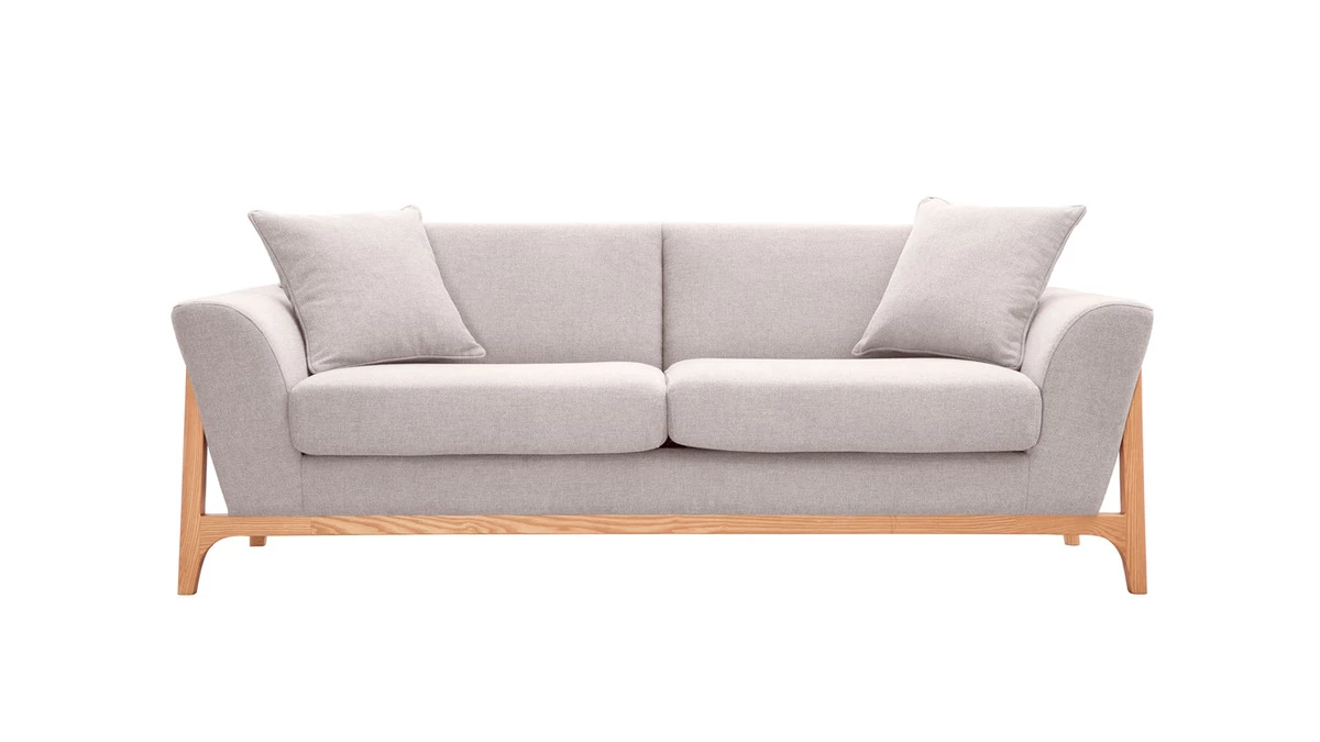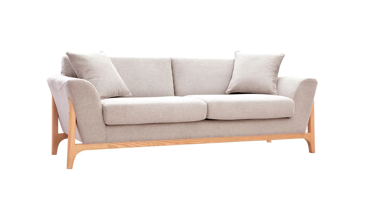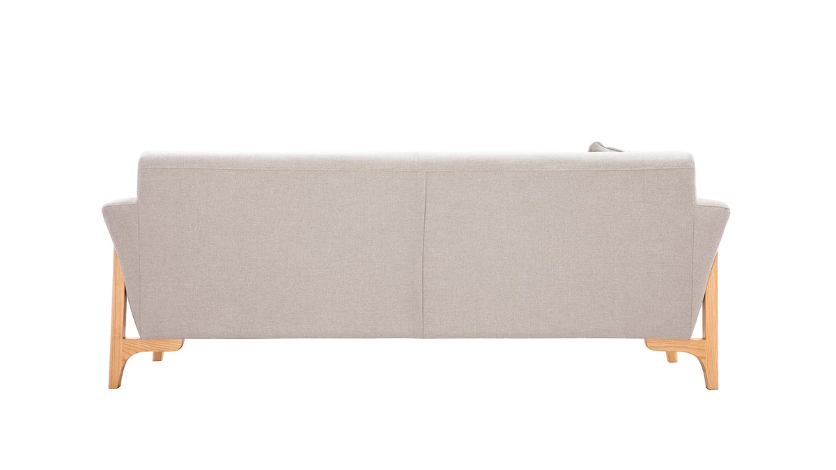 Ce canapé 3 places (L186 cm) affiche une esthétique scandinave résolument tendance. Il se distingue par sa structure en bois aérienne et épurée qui épouse parfaitement l’assise. Ce cadre en frêne massif souligne la beauté de ses lignes pures et se marie parfaitement au revêtement en tissu effet velours texturé beige (95% polyester).