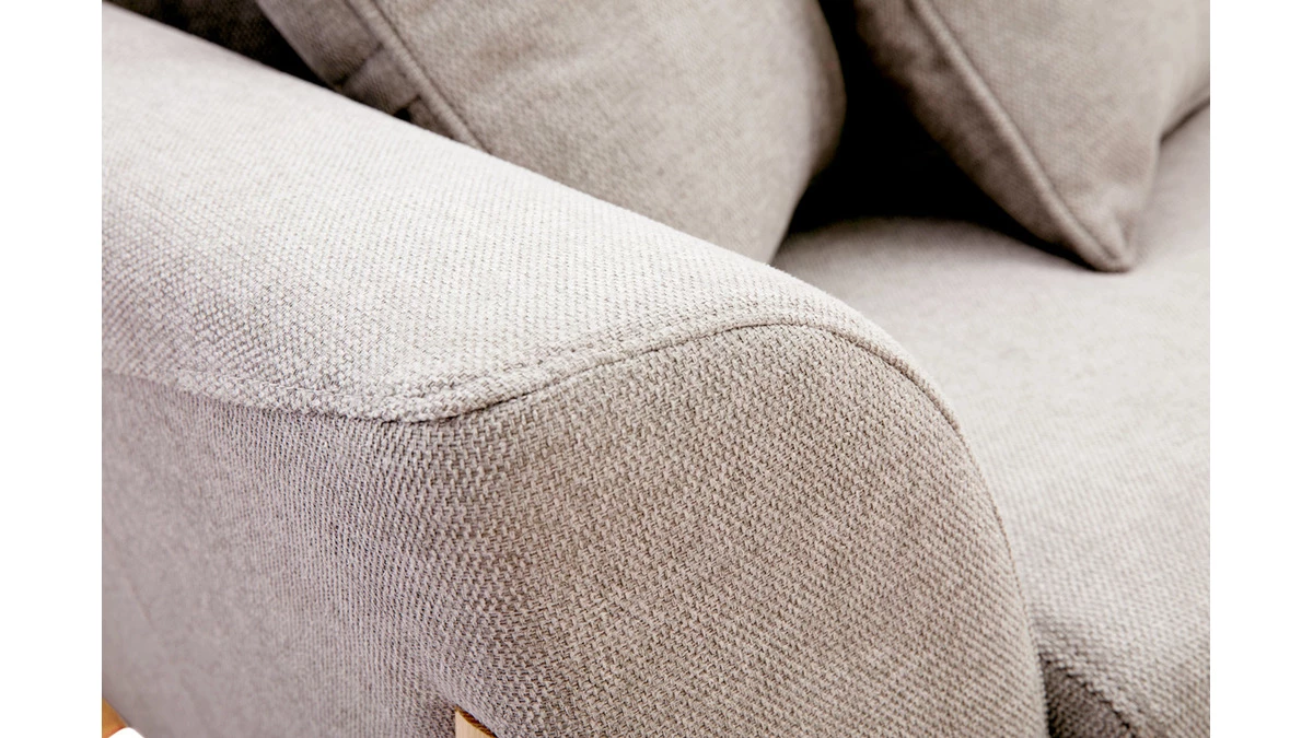 Avec ses dimensions généreuses, son rembourrage épais (densité de l’assise 28 kg/m3) et son tissu très doux, le canapé ASAKO assure un confort optimal. Les accoudoirs évasés et rebondis ainsi que les coussins de dossier moelleux font de ce canapé un véritable cocon que vous n’aurez plus envie de quitter.