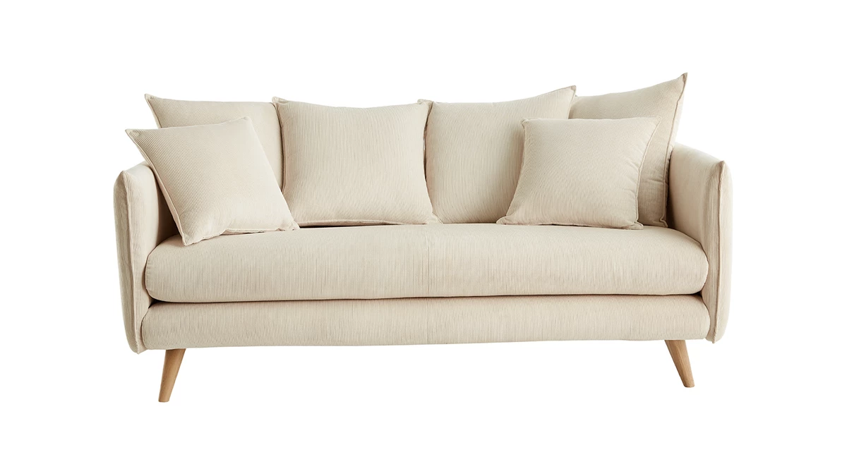 Associé à une jolie table basse en bois de la collection Miliboo, ce canapé scandinave (L178 x P97 x H91 cm) créé un espace de vie convivial et chaleureux.