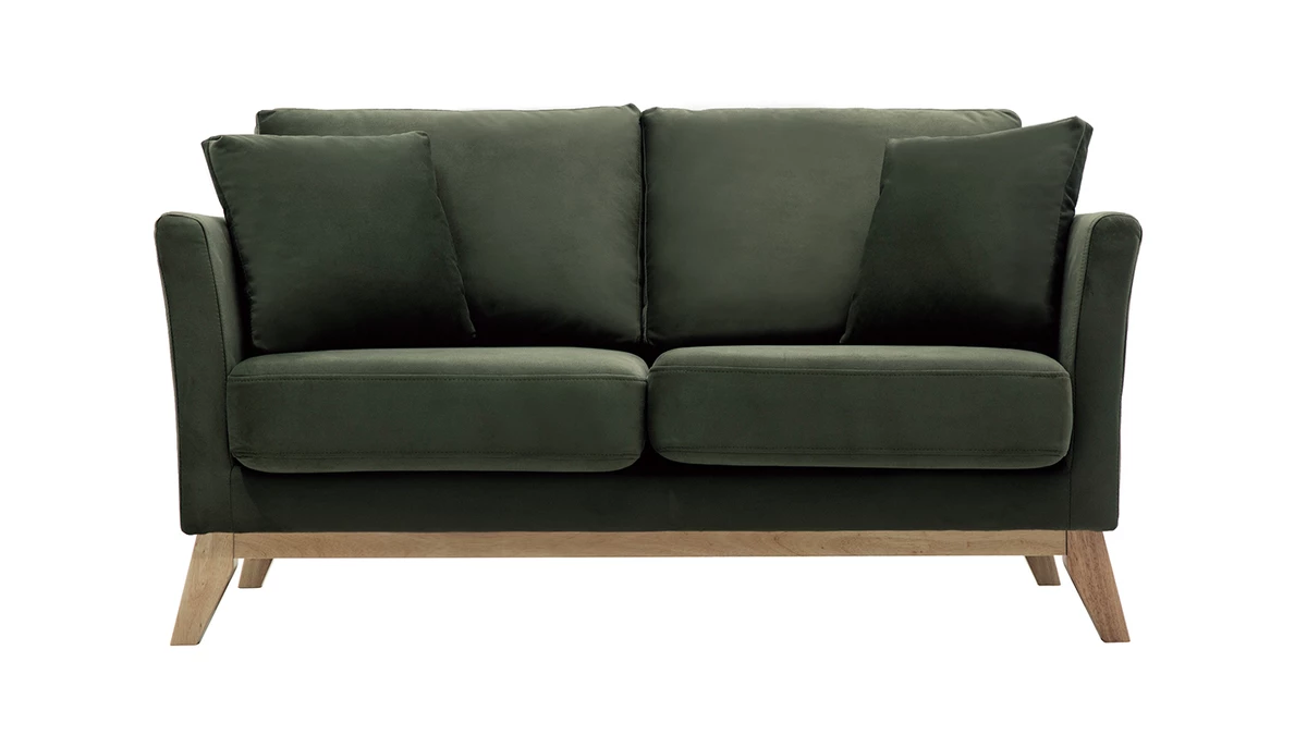 Avec son revêtement effet velours, son piètement en bois clair et son design épuré, ce petit canapé s’inscrit dans la tendance nordique. Son tissu coloré en fait une assise dans l’air du temps qui se mariera aussi bien avec une décoration d’inspiration scandinave qu’avec un intérieur contemporain.
