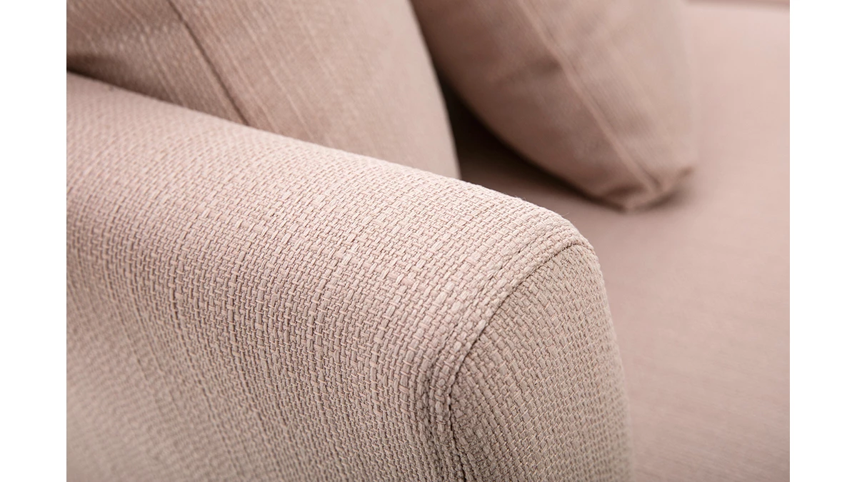Avec son revêtement en polyester, son piètement en hévéa massif et son design épuré, ce petit canapé s’inscrit dans la tendance nordique. Son tissu rose en fait une assise dans l’air du temps qui se mariera autant avec une décoration d’inspiration scandinave que moderne.