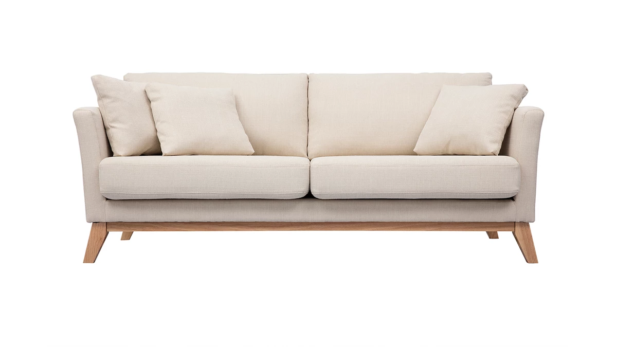 Le canapé scandinave 3 places OSLO : un look d’inspiration nordique et un revêtement en tissu beige pour un salon déco et indémodable !