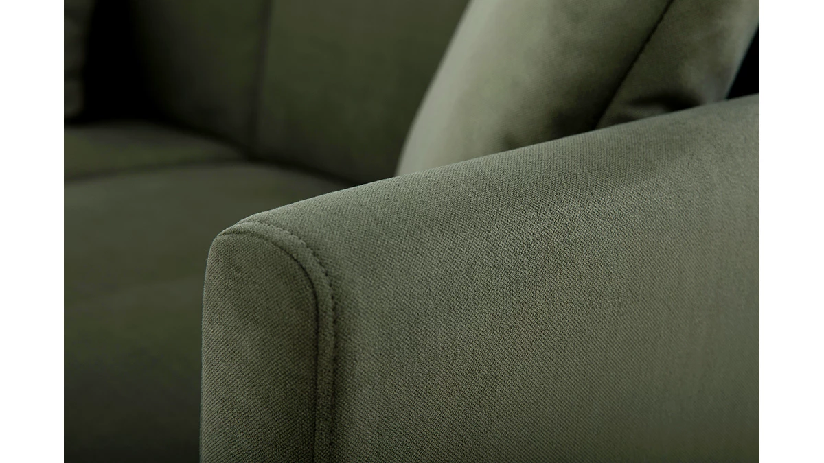 Pièce maîtresse du salon, le canapé donne également le ton ! Avec son revêtement effet velours kaki, ce canapé 3 places est idéal pour intégrer la décoration du salon sans la dénaturer. Accompagnée de bois ou de rotin, sa couleur organique donnera un esprit nature à la pièce à vivre. Associée à des métaux dorés et des teintes foncées, elle fera de la pièce un espace plus contemporain.