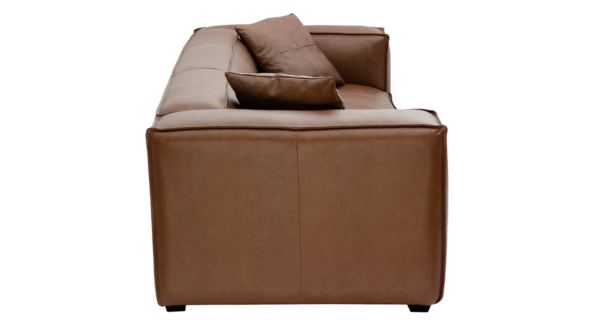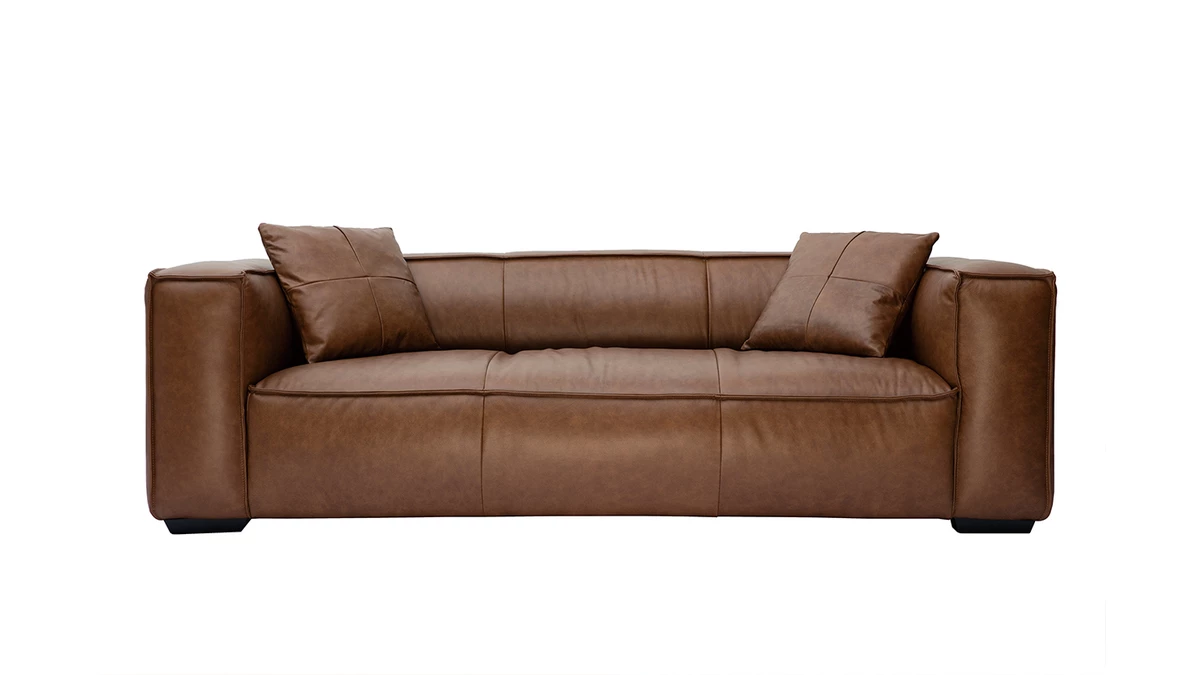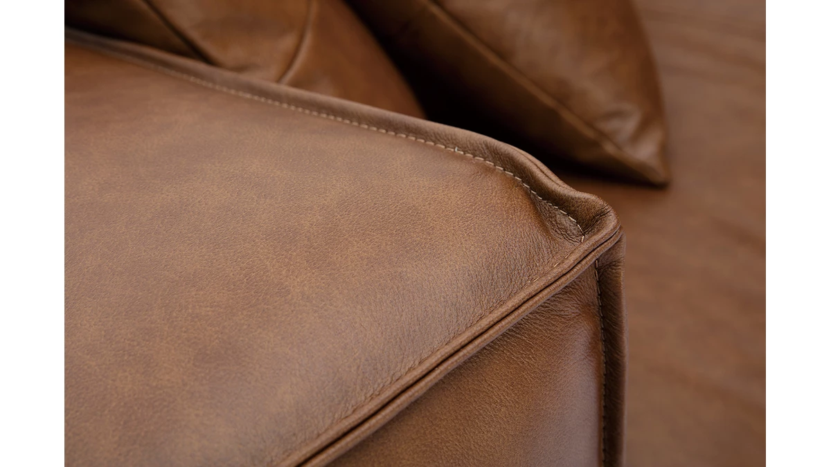 En reprenant la forme cosy d’un grand fauteuil, le canapé 3 places COBAIN invite à la détente. COBAIN est une pièce élégante avec une assise généreuse dont on admire la justesse de proportions. Il associe une forme enveloppante à un magnifique revêtement en cuir de buffle (assise, dossier et accoudoirs) et un piètement authentique en hévéa massif. Canapé travaillé tout en douceur, il forme le cocon confortable et raffiné qu’on aime tant retrouver dans les salons cosy.
