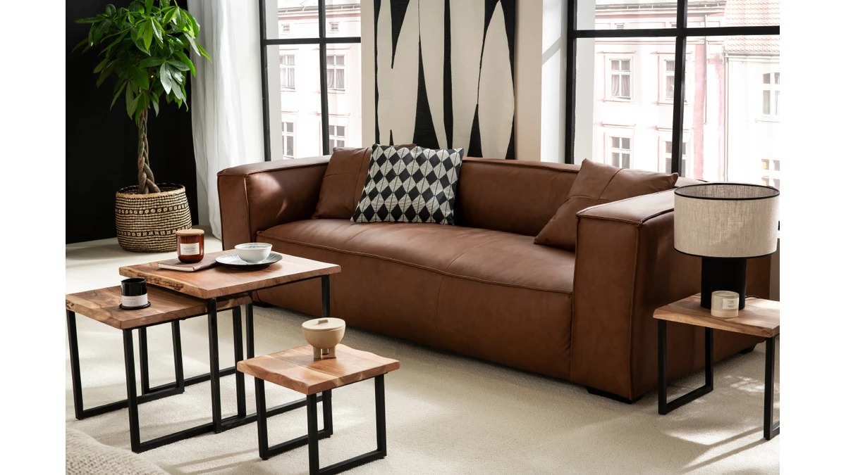 COBAIN est le canapé lounge par excellence. Grâce à son assise rebondie garnie de mousse et de duvet, ses larges accoudoirs et son dossier, il est le compagnon idéal des pauses détente. Avec ce canapé en cuir vintage aux dimensions généreuses (L220 x P98 x H65 cm), le salon devient cet espace convivial et chaleureux où il fait bon se retrouver. COBAIN accueillera jusqu’à 3 personnes confortablement pour des moments privilégiés en famille ou entre amis. Et pour encore plus d’authenticité, associez-le avec une table basse en bois.