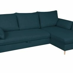 Canapé D’angle Convertible Réversible Avec Coffre 3-4 Places En Tissu Bleu Océan Et Bois Clair DRISS