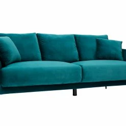 Canapé Design 2 Places En Tissu Velours Pétrole Et Bois Noir CLIFF – Miliboo & Stéphane Plaza