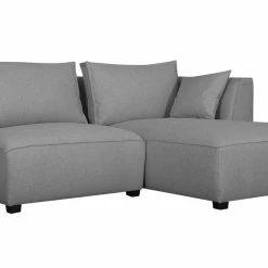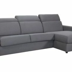 Canapé D’angle Réversible Et Convertible Avec Coffre 4 Places En Tissu Gris Et Bois Clair GRAHAM