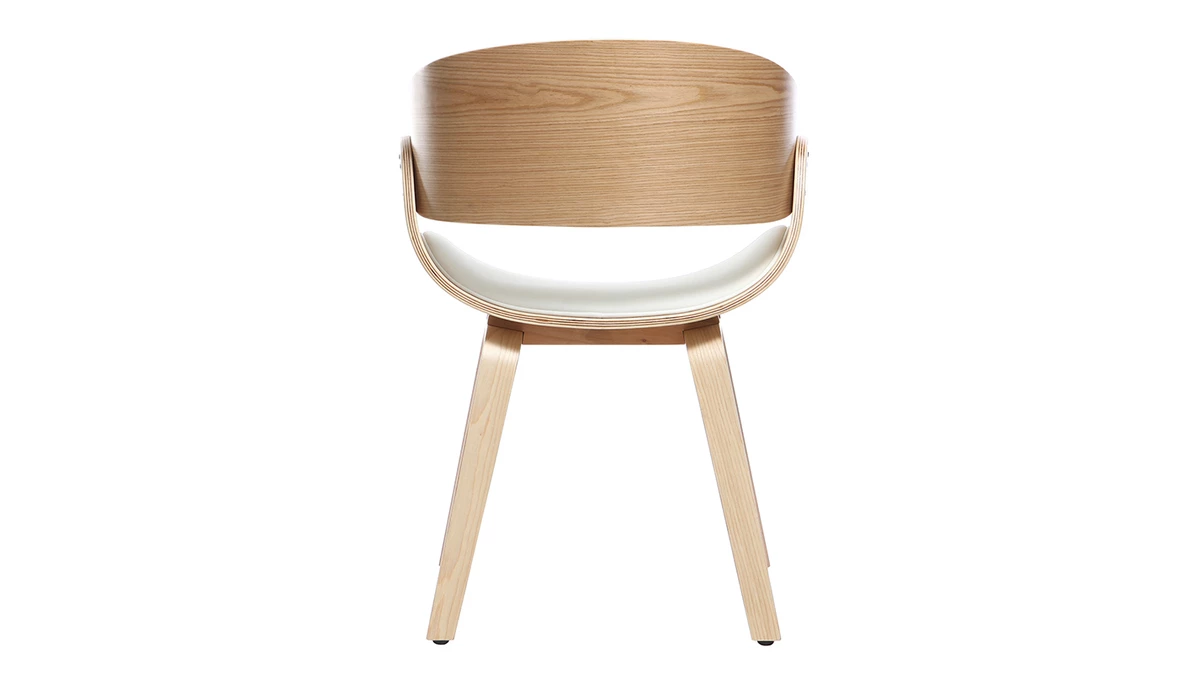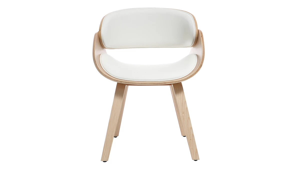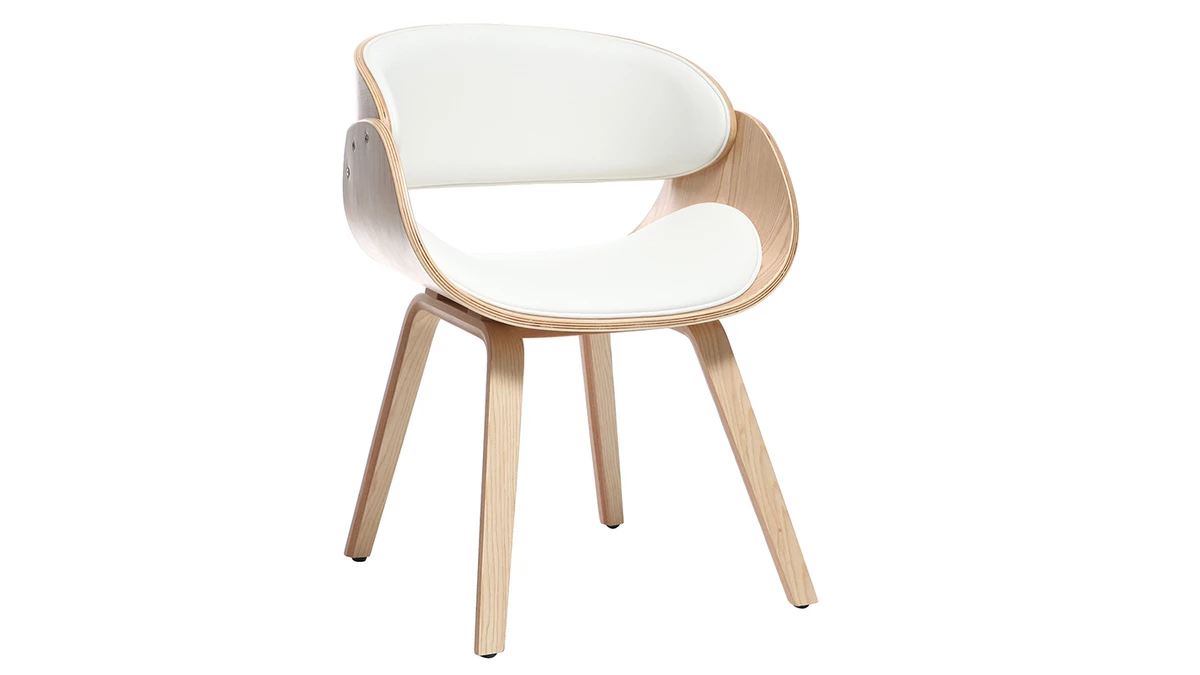 Les courbes atypiques de cette chaise en bois clair et blanc se tiennent prêtent à vous combler de confort !
