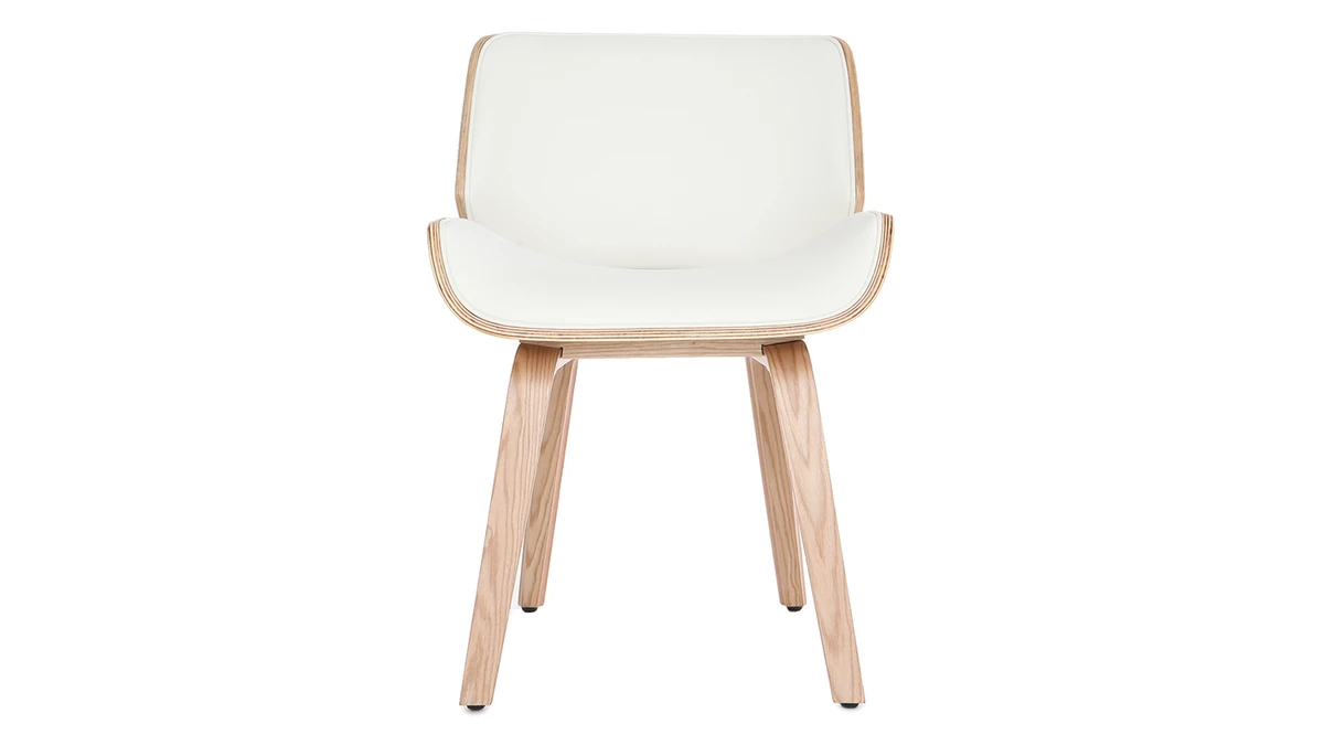 Mélange de courbes et de lignes franches, cette chaise blanche et bois clair est un objet déco à part entière. Sa forme est inspirée du design scandinave et des pièces vintage pour un intérieur au charme authentique.