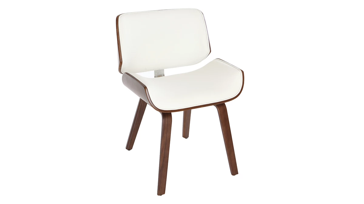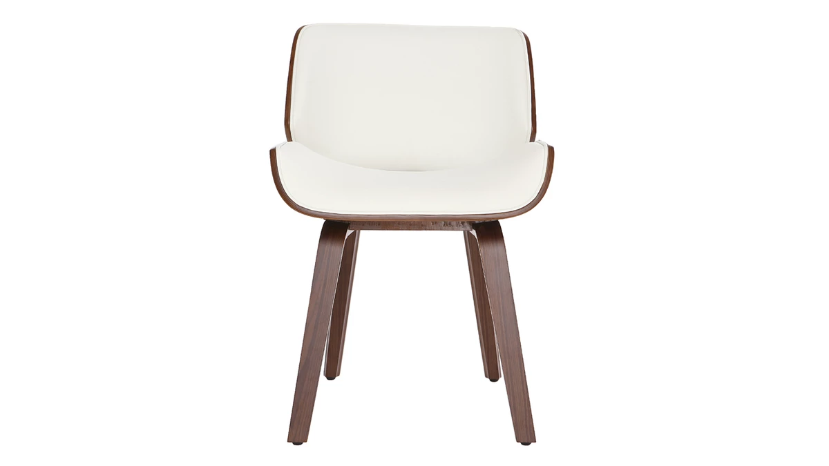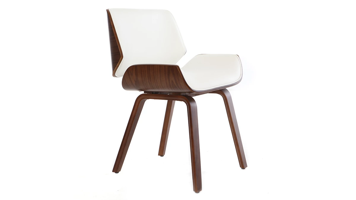 Mélange de courbes et de lignes franches, cette chaise blanche et bois foncé est un objet déco à part entière. Sa forme est inspirée du design scandinave et des pièces vintage pour un intérieur au charme authentique.