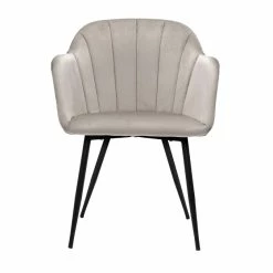 Élégante et raffinée, elle marie avec aisance son assise en velours taupe à des pieds fuselés en métal noir. Ce piètement aérien vient parfaire son look et signe son style ultra contemporain.