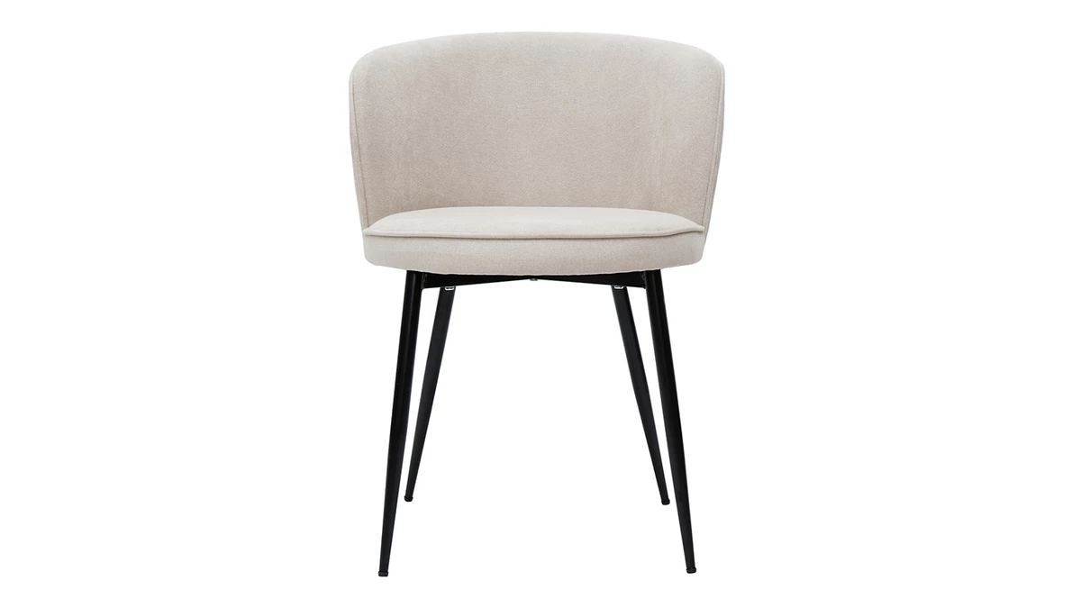 Un modèle de chaise fauteuil qui invite à la convivialité et à la paresse ! Dossier et assise sont rembourrés (densité de la mousse 25 kg/m³) et entièrement habillés d’un tissu effet velours beige (100% polyester) au toucher ultra doux. Avec leurs lignes enveloppantes, ces chaises modernes en tissu beige et métal noir offrent un confort d’assise très appréciable lorsque les repas de famille s’éternisent. Leurs finitions soignées (surpiqûres) et leur piètement fuselé en font des assises à l’élégance intemporelle.