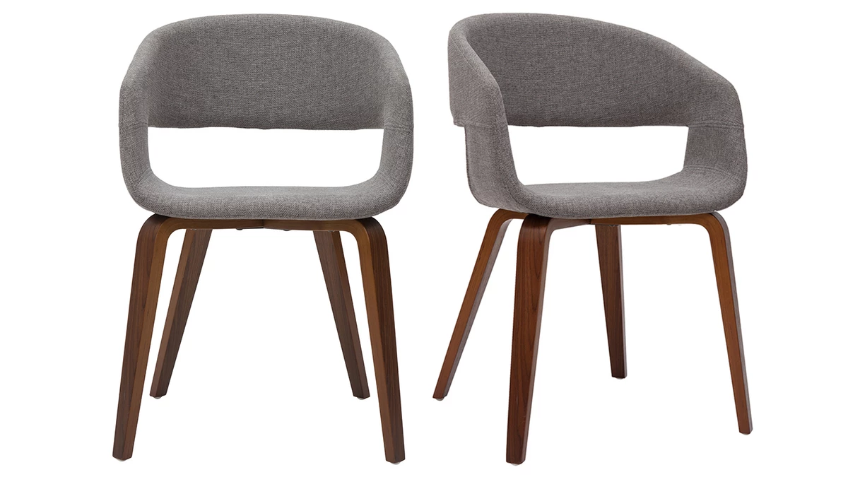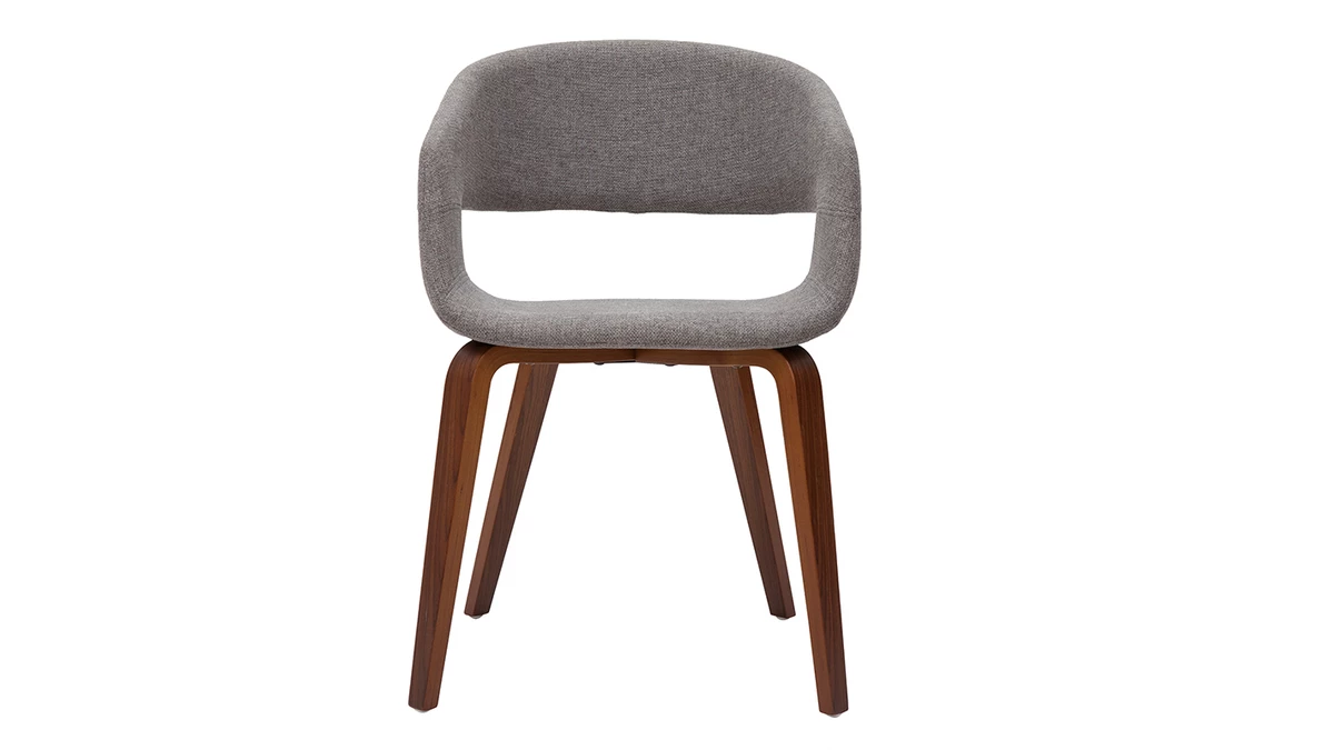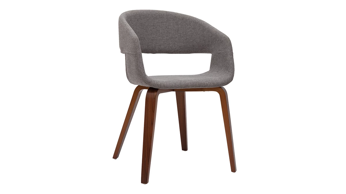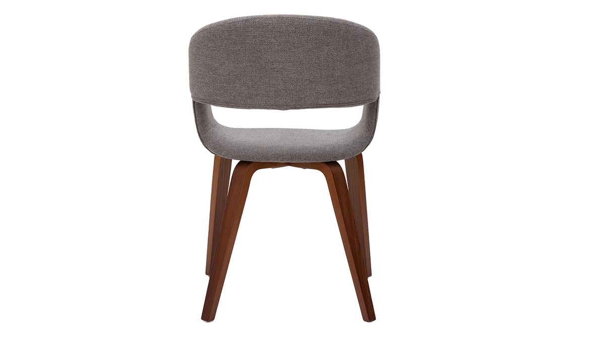 L’élégant piètement en bois foncé et le siège tout en rondeur coloris gris chiné se partagent la vedette et conjuguent avec élégance design contemporain et inspiration vintage. Les beaux volumes galbés signent un look singulier ultra tendance. Multipliées autour d’une table en bois foncé dans un univers rétro chic, ce modèle de chaise en bois foncé moderne apportera du cachet et une note très raffinée à votre coin repas.