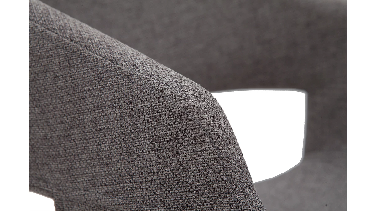 Des formes généreuses qui mêlent équilibre et légèreté pour des repas conviviaux tout confort ! Rembourrés d’une mousse moelleuse (densité 25 kg/m3) pour un agréable maintien, les larges assises accueillantes et hauts dossiers galbés unissent leurs courbes jusqu’aux accoudoirs enveloppants. L’ensemble s’habille d’un revêtement en tissu (97% polyester et 3% nylon), une matière résistante et agréable au toucher. Enfin, les 4 solides pieds placage noyer garantissent robustesse et grande stabilité.