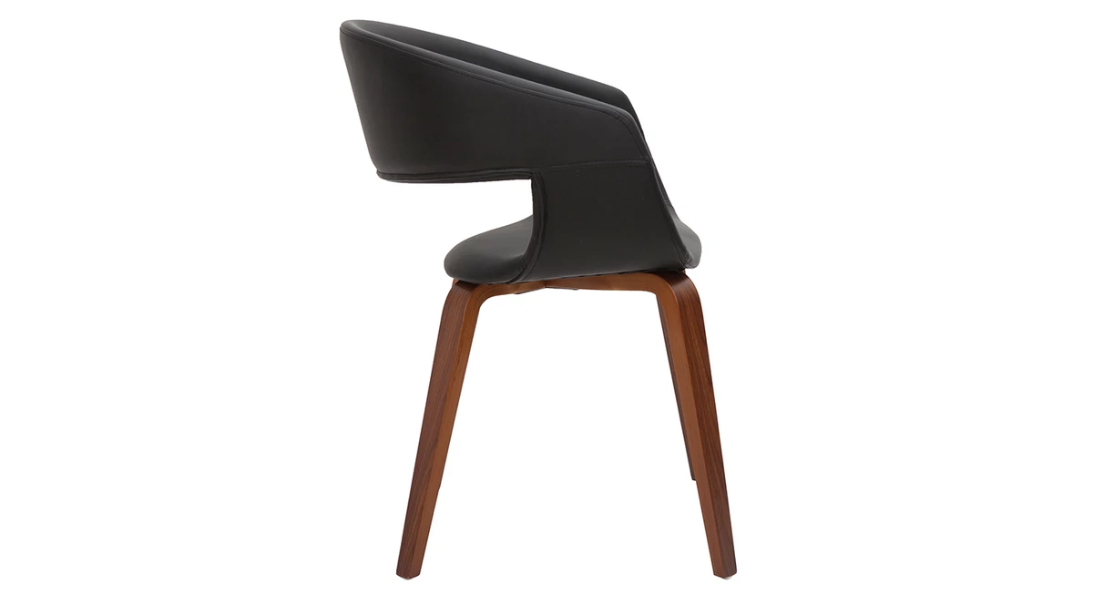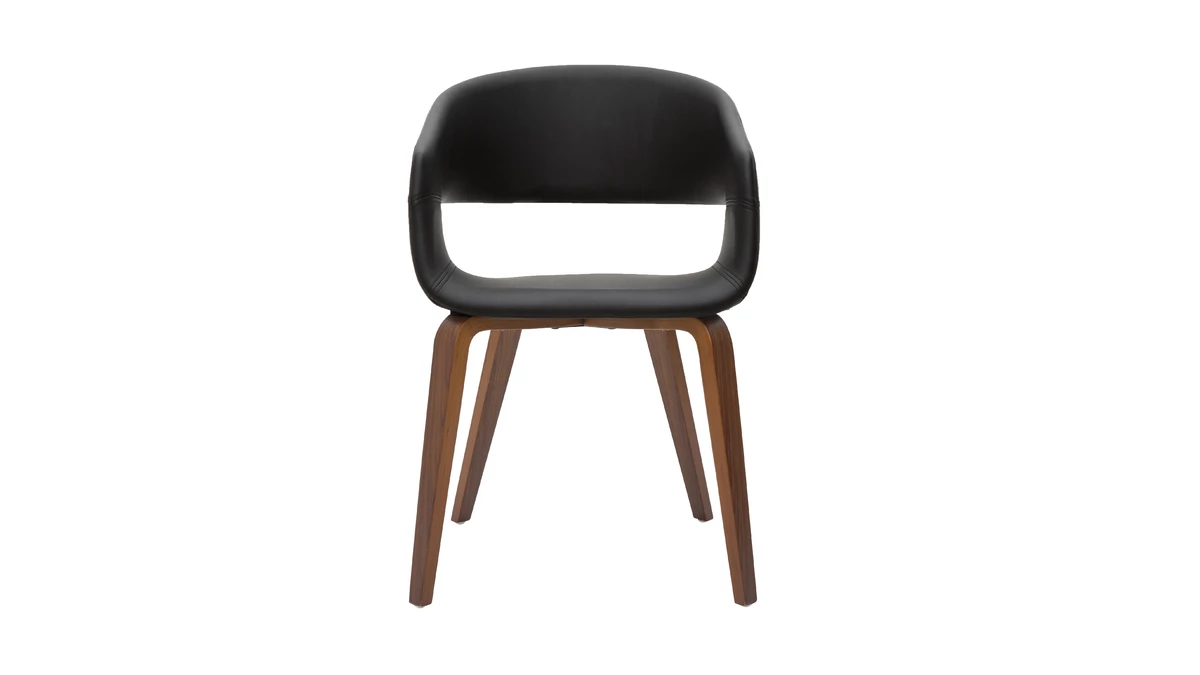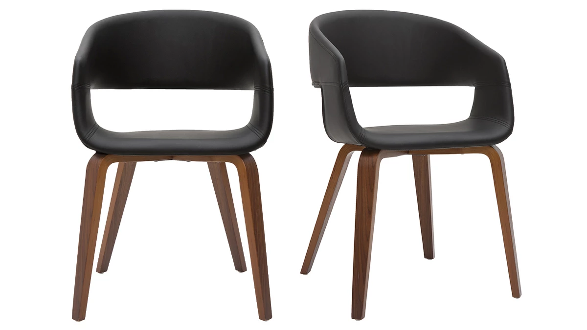 Des formes généreuses qui mêlent équilibre et légèreté pour des repas conviviaux tout confort ! Rembourrés d’une mousse moelleuse (densité 25 kg/m3) pour un agréable maintien, les larges assises accueillantes et hauts dossiers galbés unissent leurs courbes jusqu’aux accoudoirs enveloppants. Ces chasies design s’habillent d’un revêtement en polyuréthane, une matière résistante et facile d’entretien. Enfin, les 4 solides pieds placage noyer garantissent robustesse et grande stabilité.
