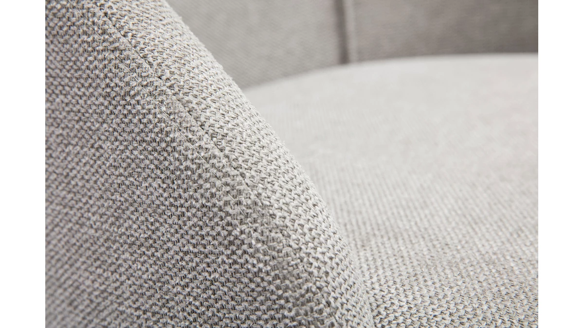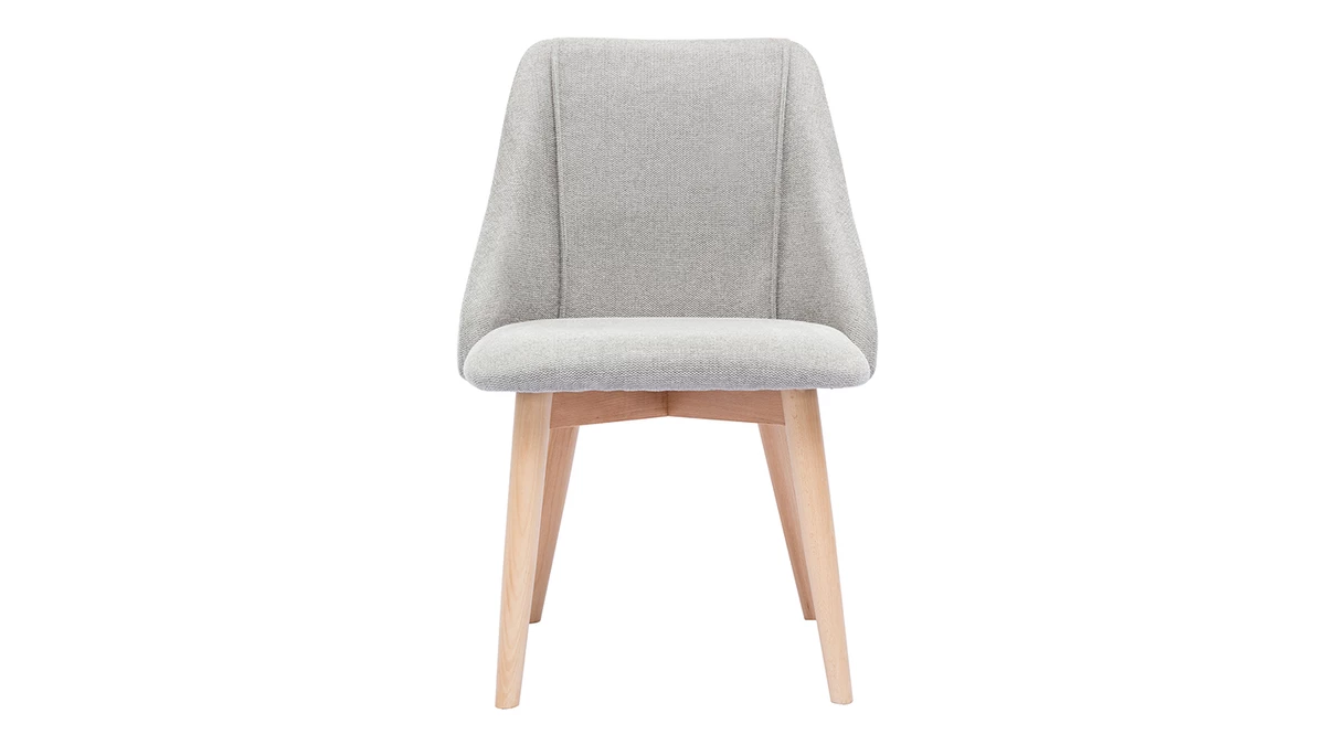 Ces chaises légères et polyvalentes allient confort et convivialité. Avec leur dossier enveloppant (H40 cm) et leur assise généreusement rembourrée, elles jouent la carte de la douceur. Les formes douces répondent aux teintes naturelles dans un équilibre parfait et une élégance subtilement décontractée. Leur tissu effet velours texturé gris et s’accorde parfaitement avec le piètement en hêtre massif. Détail de style : les deux surpiqûres situées à l’intérieur du dossier souligne la ligne graphique sobre et affirmée de ces chaises.