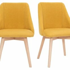 Ces chaises de salle à manger légères et polyvalentes allient confort et convivialité. Avec leur dossier enveloppant (H40 cm) et leur assise généreusement rembourrée, le modèle HIGGINS joue la carte de la douceur. Les formes douces répondent aux teintes naturelles et vibrantes dans un équilibre parfait et une élégance subtilement décontractée. Leur tissu effet velours texturé invite à la quiétude et s’accorde parfaitement au piètement en hêtre massif. Détail de style : les deux surpiqûres situées à l’intérieur du dossier souligne la ligne graphique sobre et affirmée de ces chaises jaune moutarde.