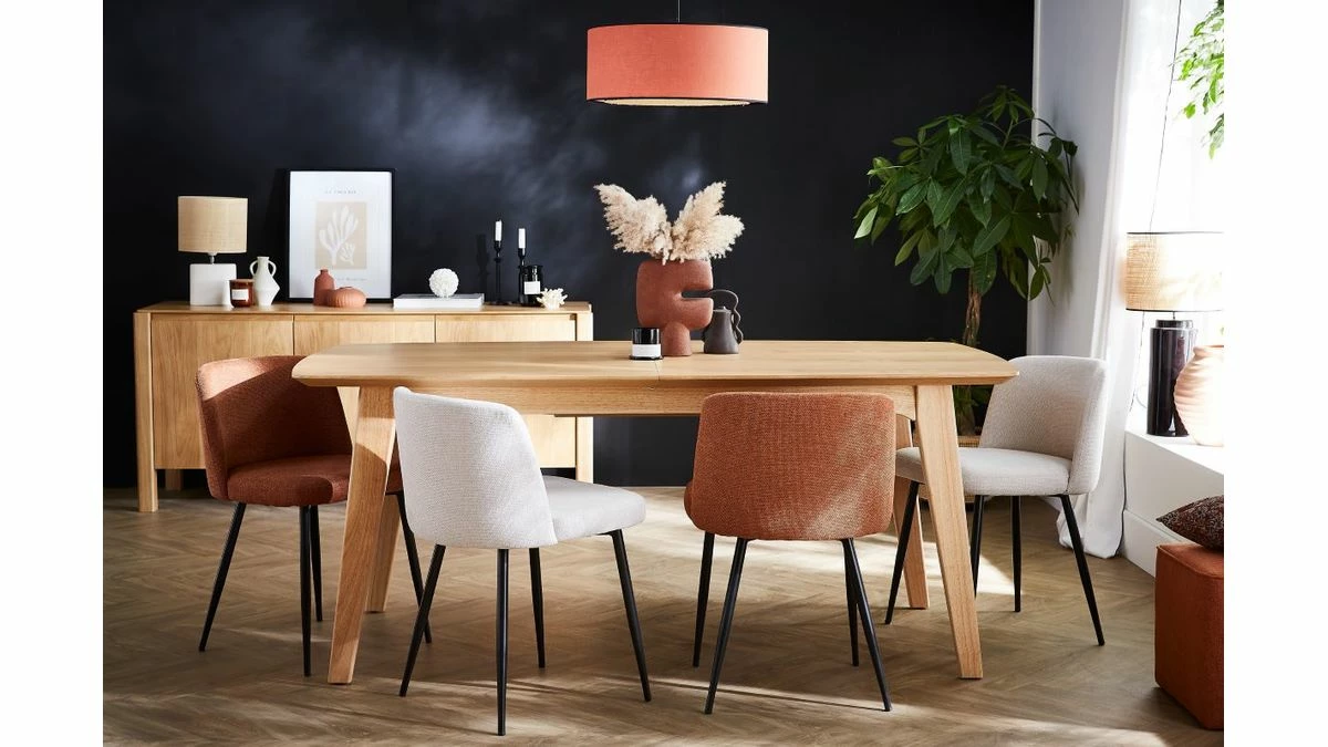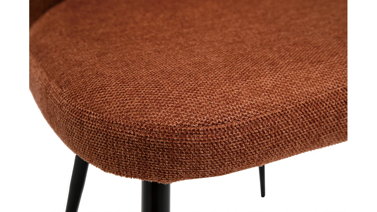 Ces chaises mettent en avant un élancé piètement noir qui accueille un siège au revêtement en tissu effet velours texturé terre brûlée. Envoutante et chaleureuse cette nuance s’impose avec caractère dans une maison. Couleurs et matières apporteront ici luminosité et note cosy à votre coin repas. Vintage, scandinave, contemporaine… quelle que soit la déco de votre cuisine ou salle à manger, les chaises MONTI au look intemporel, prendront avec aisance leurs marques dans un grand nombre d’ambiances.
